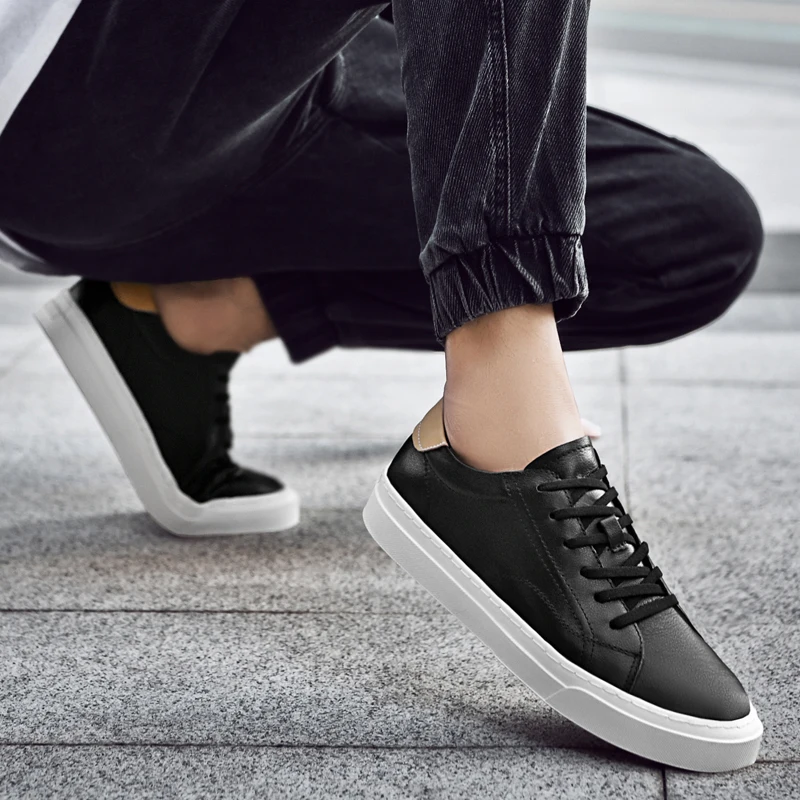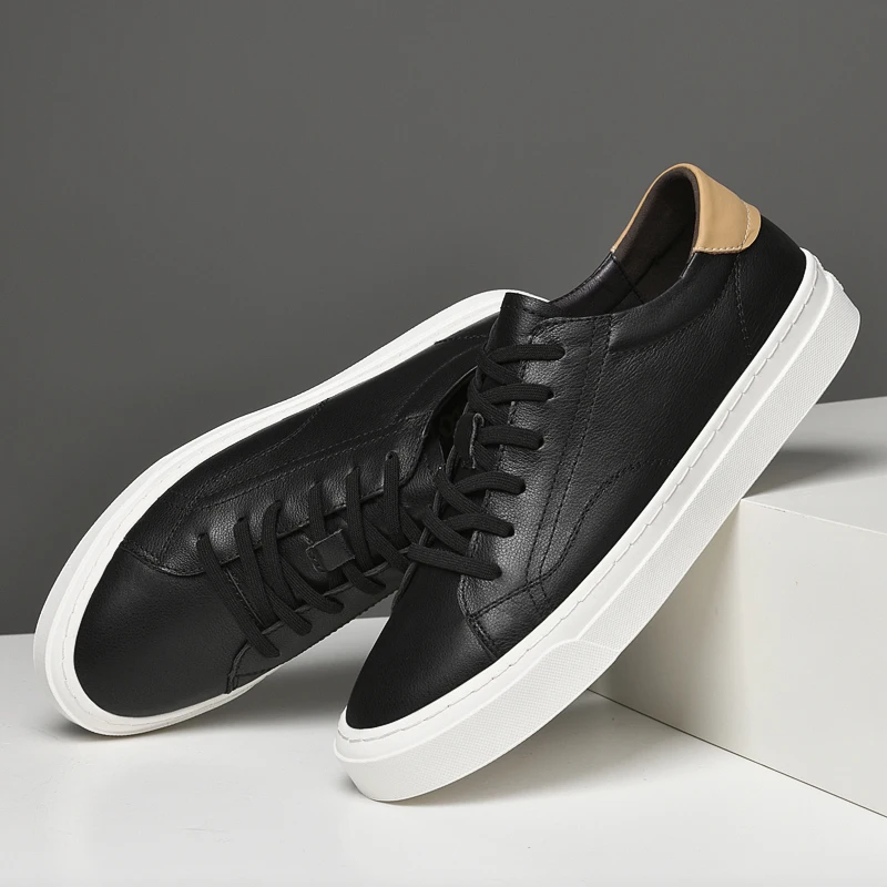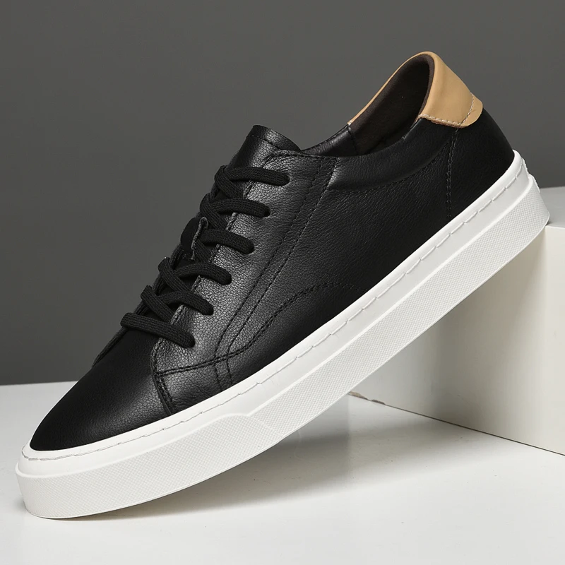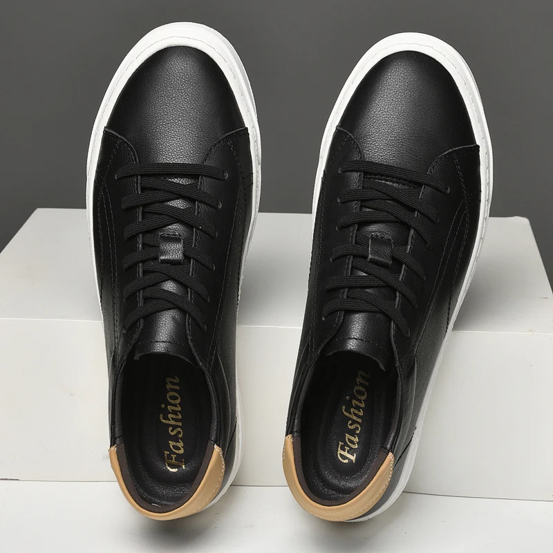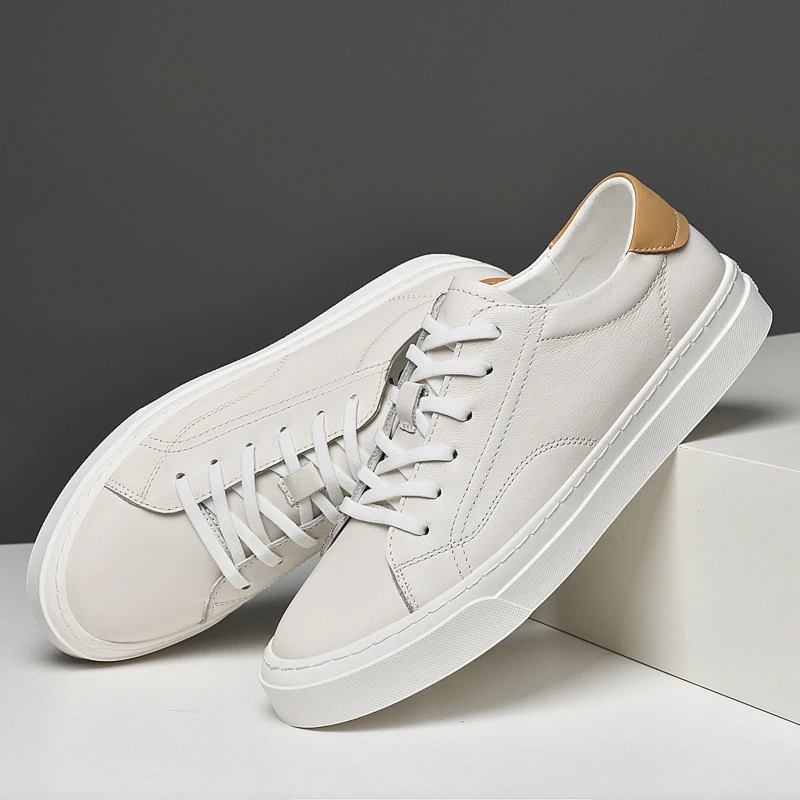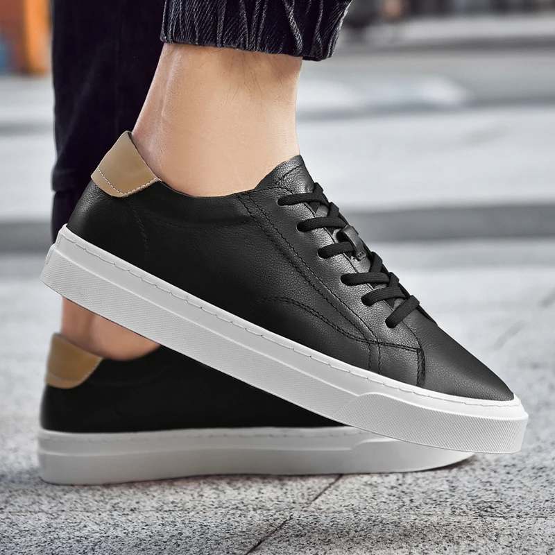 Xajzpa - Fashion Men Genuine Leather Casual Shoes Lightweight Flats Shoes Luxury Brand Men's White Walking Sneakers New