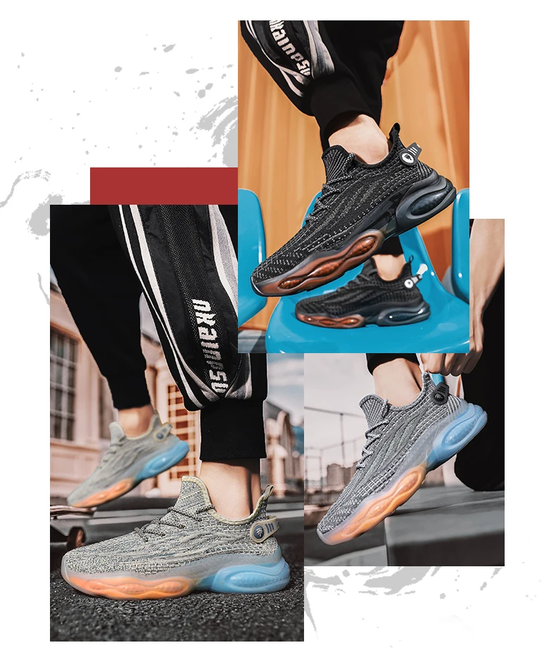 Xajzpa Men Sports Running Black Jogging Shoes Casual Sneakers Outdoor Breathable Mesh Anti Slip Light Shock-absorption Sneakers Men