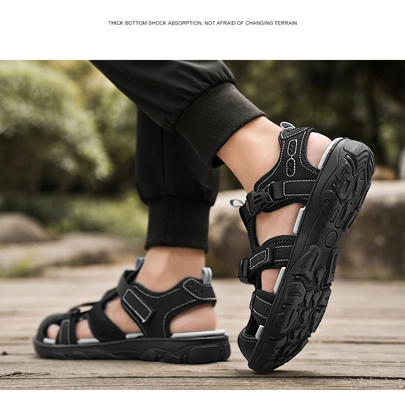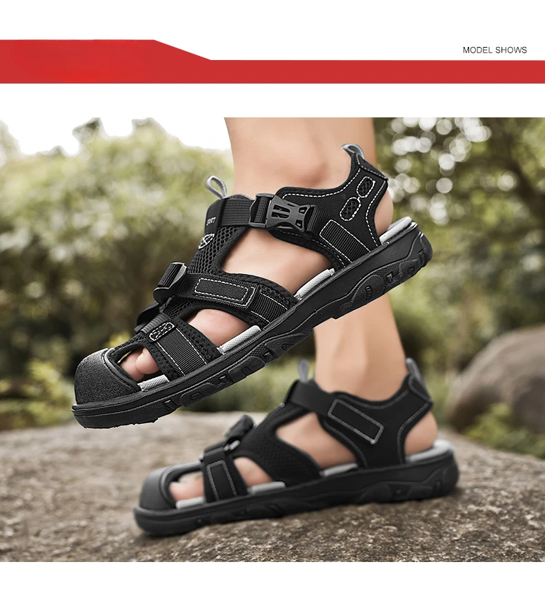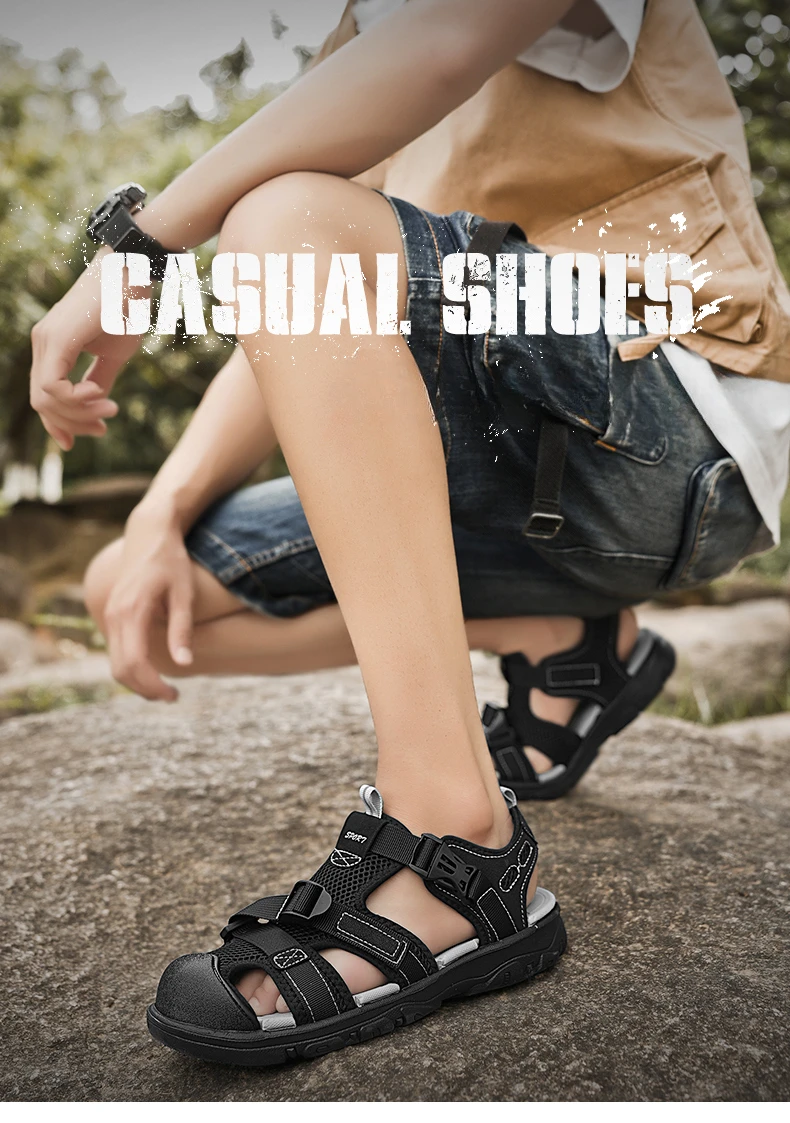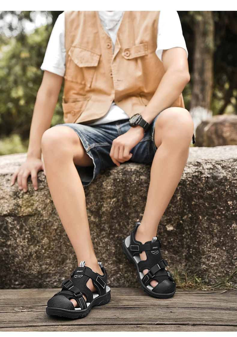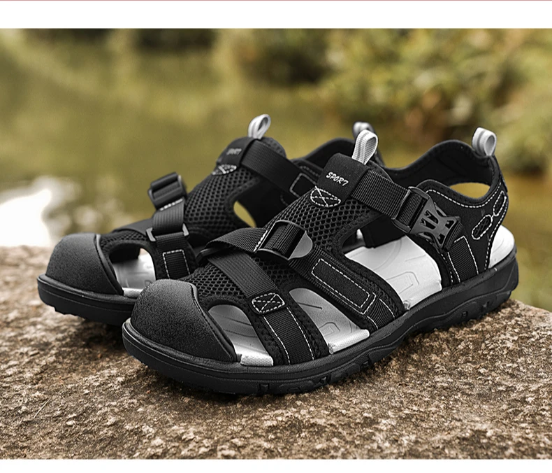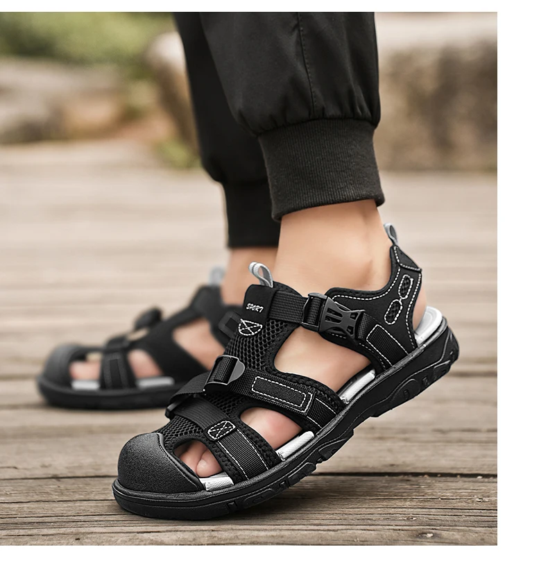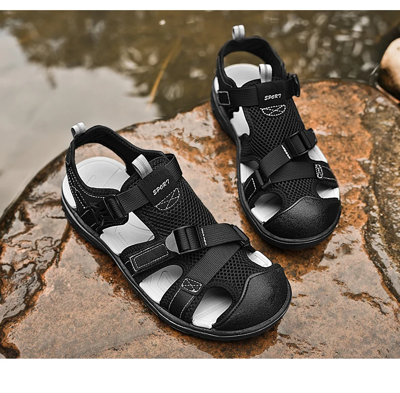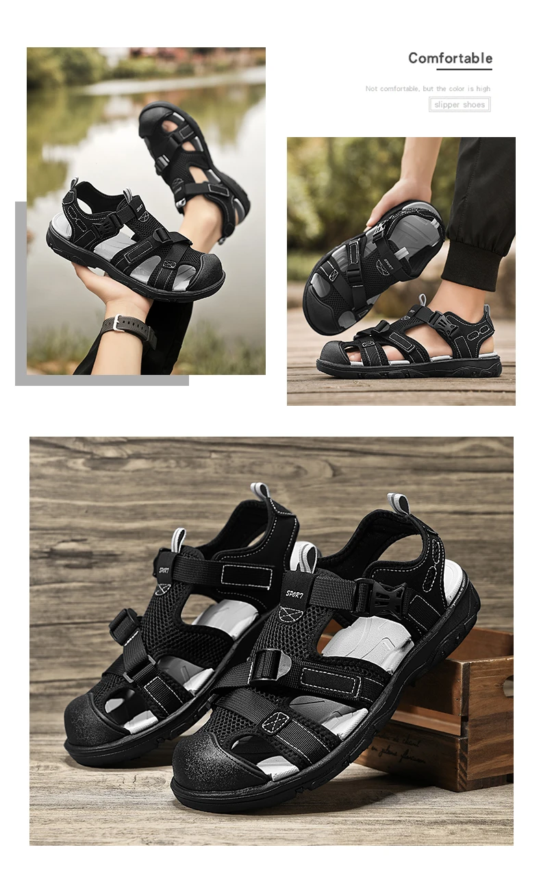 Xajzpa Men's Closed Toe Beach Sandals Durable Non-Slip Outdoor Footwear for Summer Lightweight All-match Mesh Casual Men Stylish Shoes