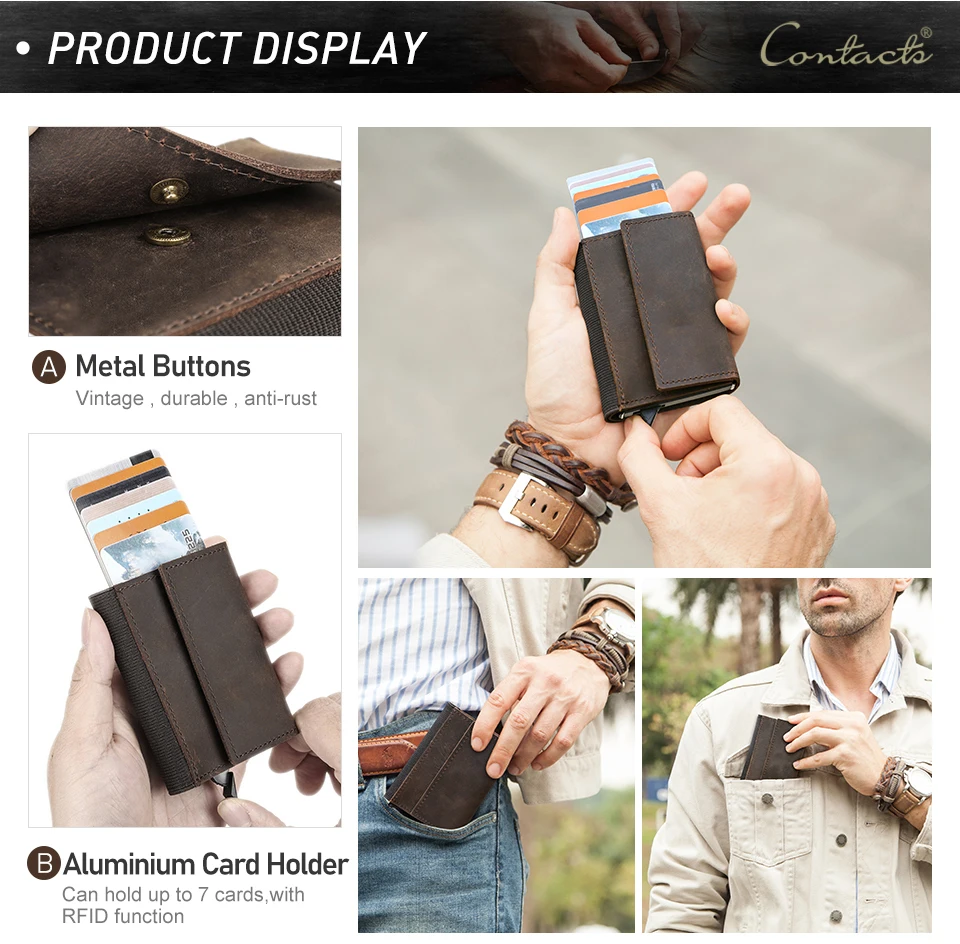 Xajzpa Crazy Horse Leather Card Holder Wallet Men Automatic Pop Up ID Card Case Small Coin Purse RFID Blocking Male Wallets
