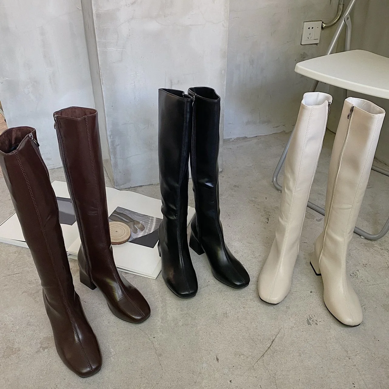 Xajzpa Women Warm Long Boots Woman Knee High Booties Ladies Shoes Platform Thick Heel PU Leather Soft Zipper Woman Fashion Winter