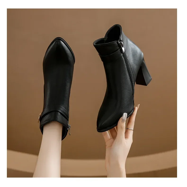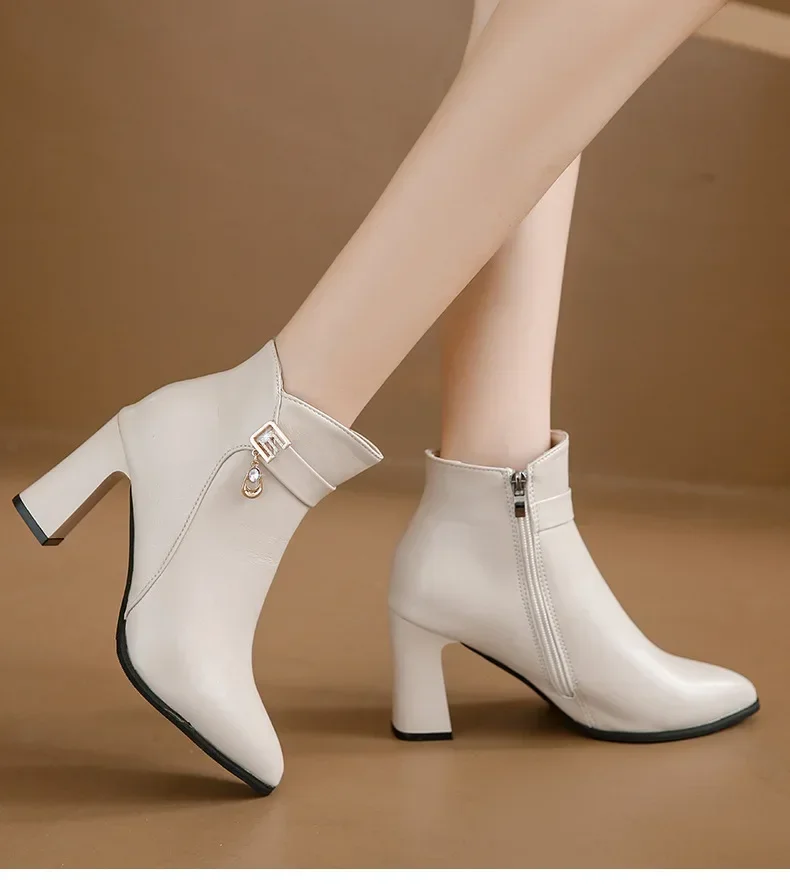 Women's Ankle Boots Fashion High Heels Women's Boots Autumn Winter Rhinestone Pendant Zipper Comfort Non Slip Leather Boots