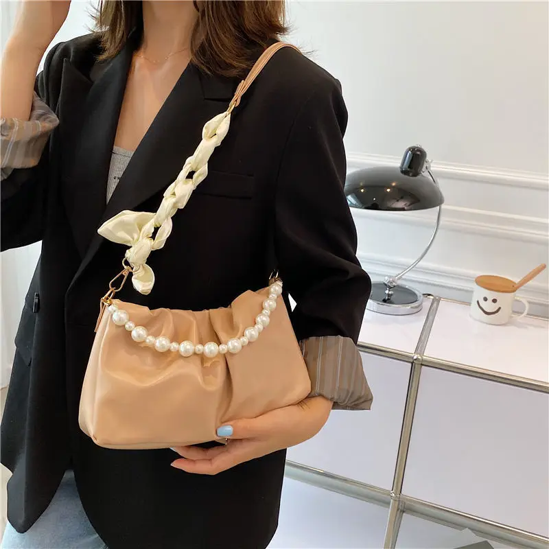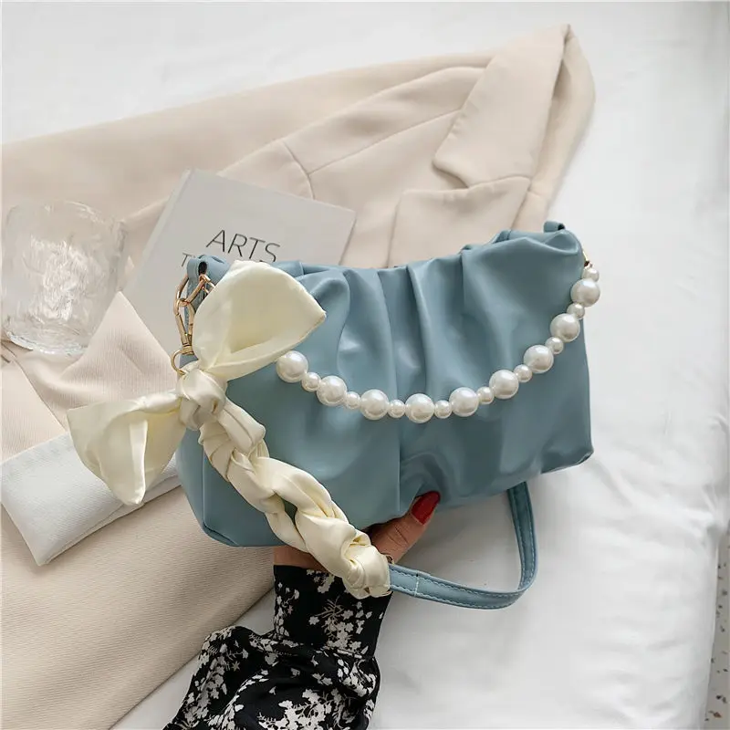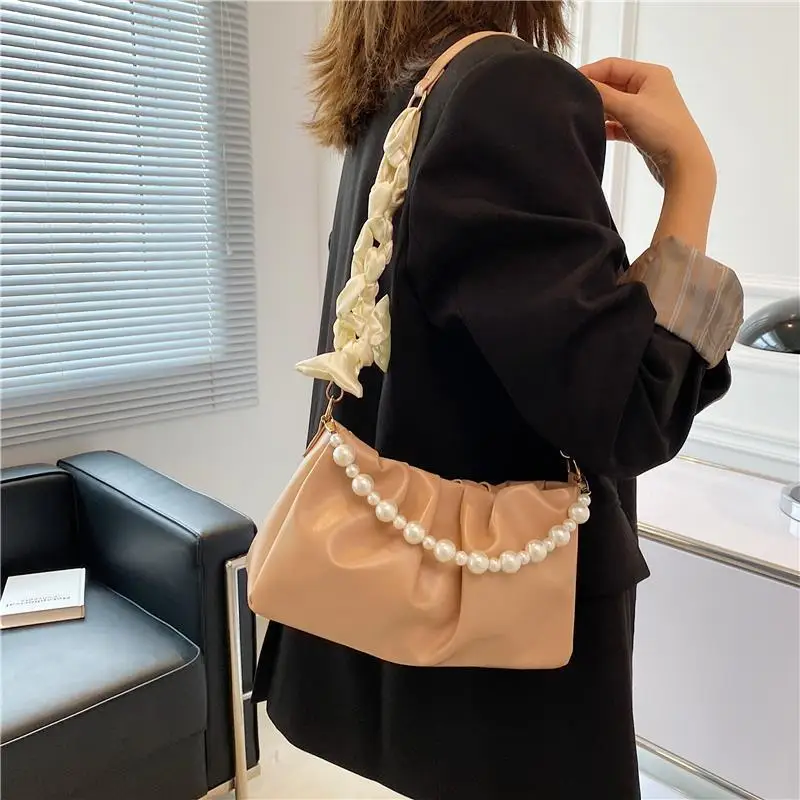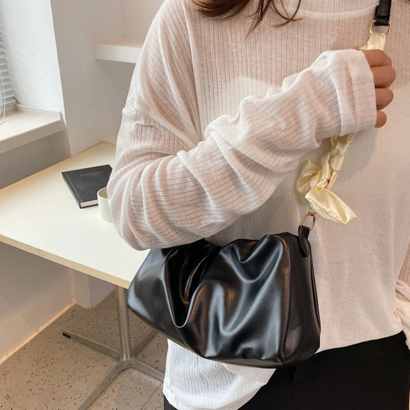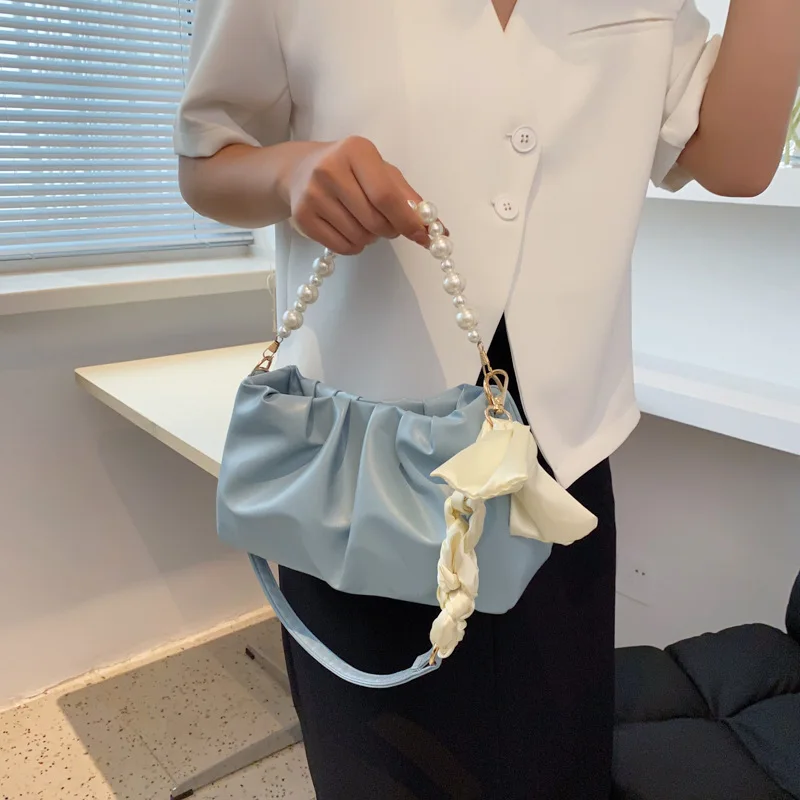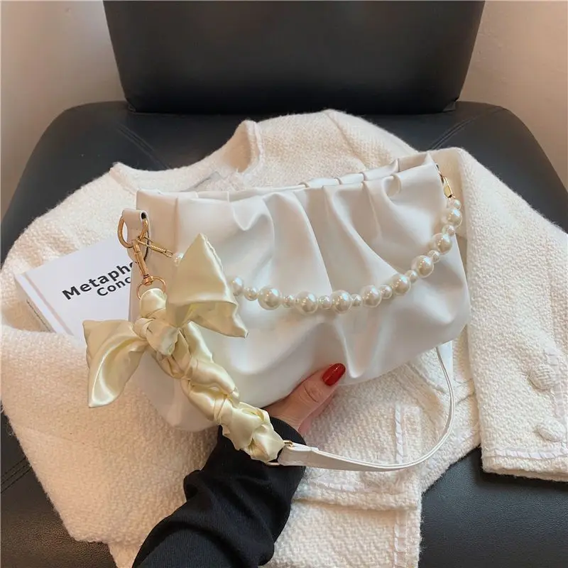 Xajzpa Fashion Pleated Crossbody Shoulder Bag Fashion Cloud PU Leather Small Handbags Purse Women Pearl Luxury Design Underarm Bags