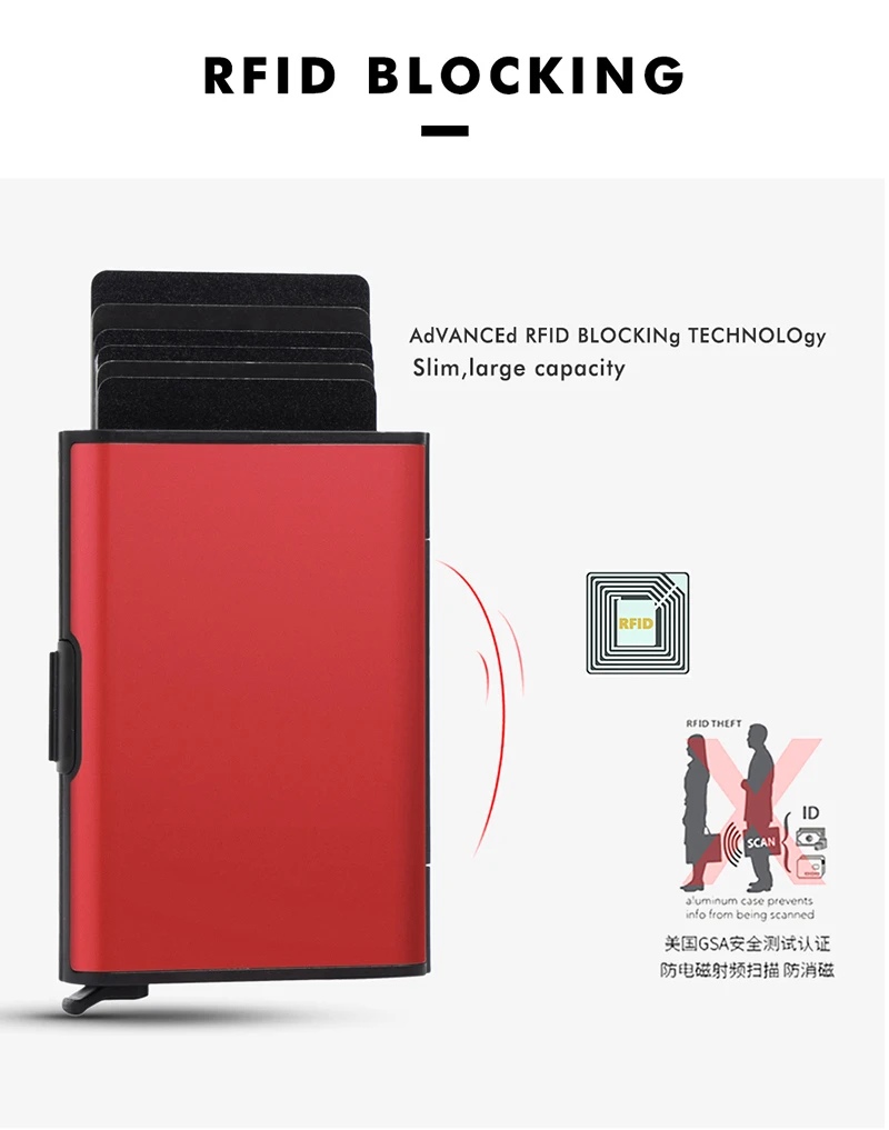 Xajzpa Rfid Credit Card Holder Men Minimalist Coin Wallets Pop Up Metal Id Bank Cardholder Case Identification Card Holder Folders