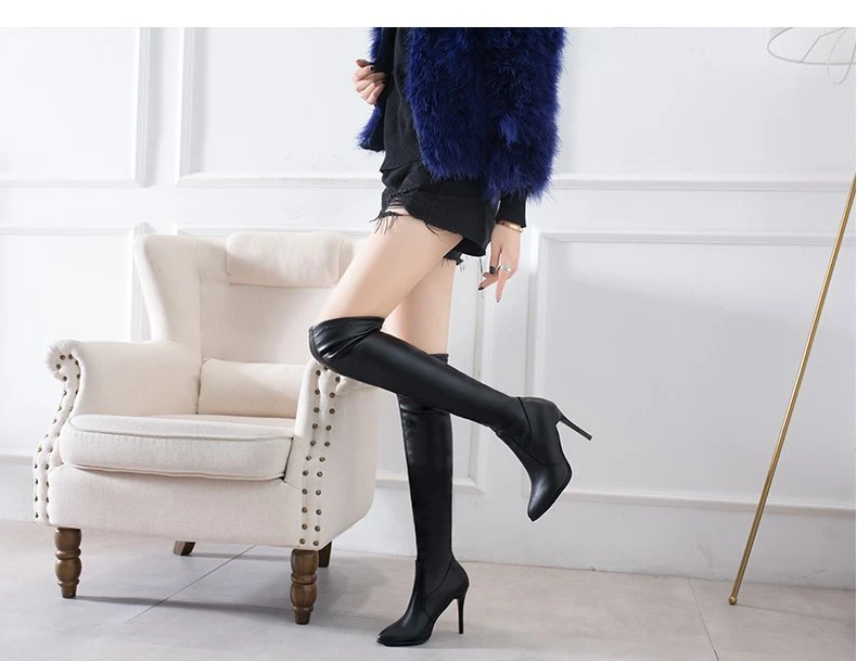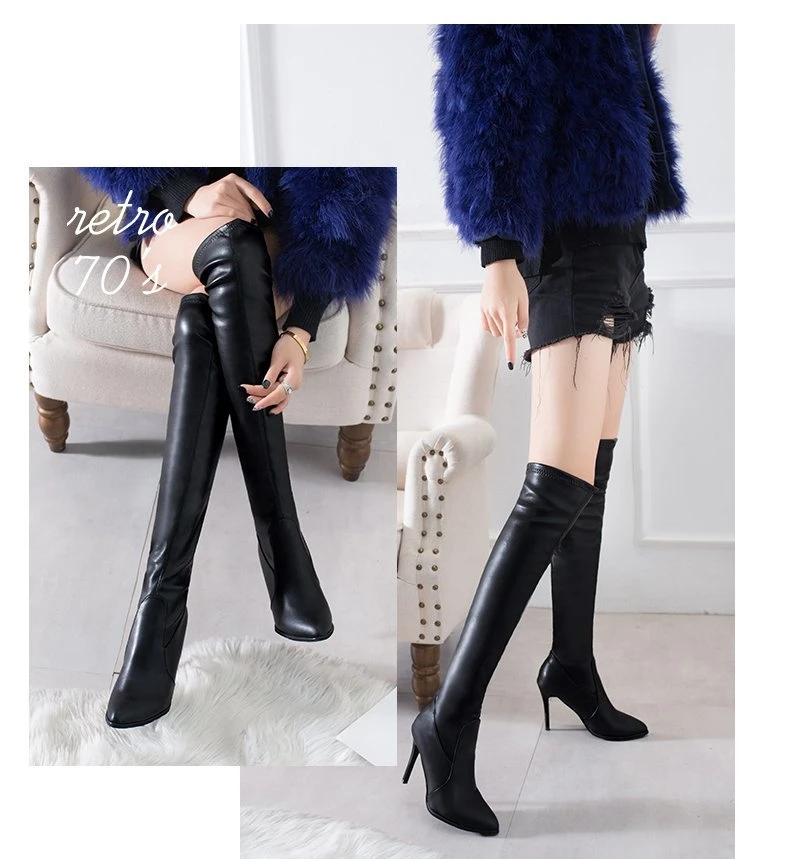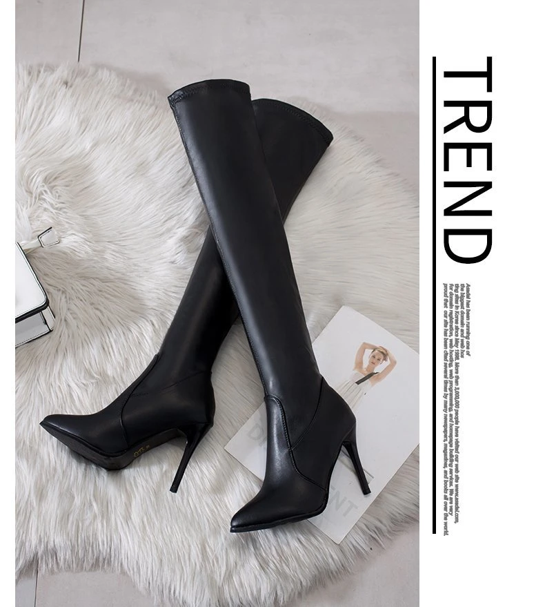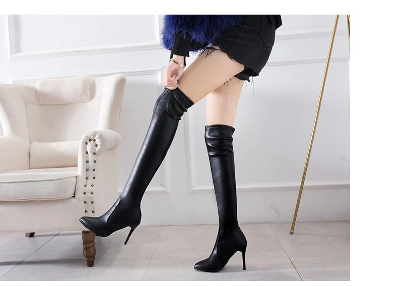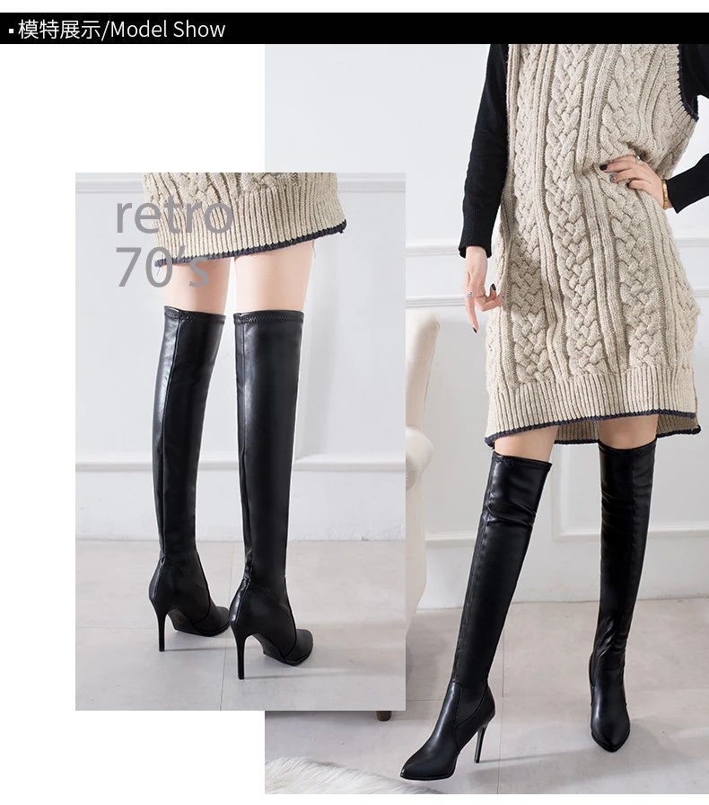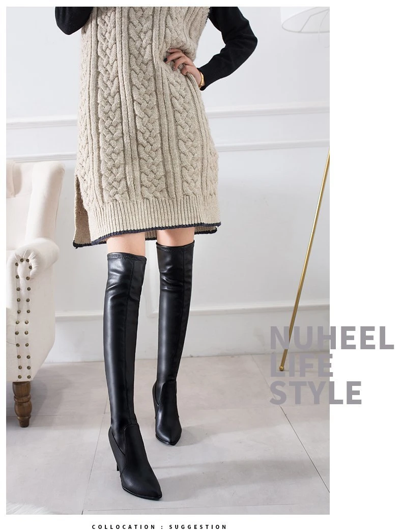 Xajzpa White Women's Long Boots Petite Slim Fit High Heel Knee-length Ankle Boots Rubber Upper Pointed Toe For Autumn/winter