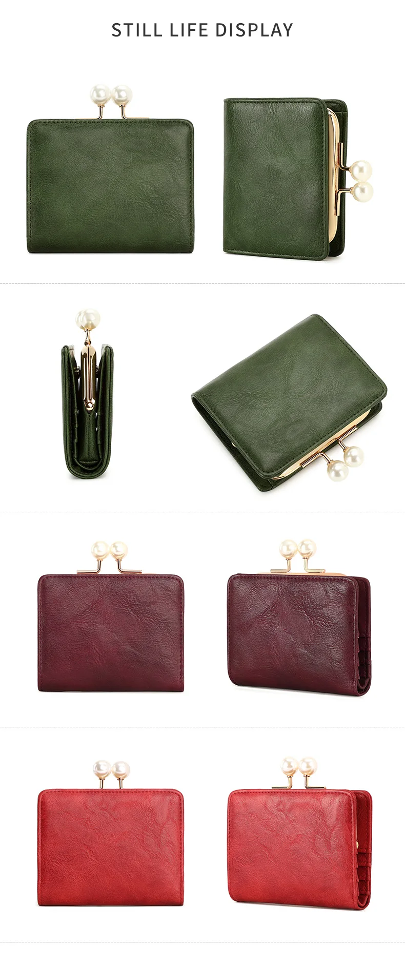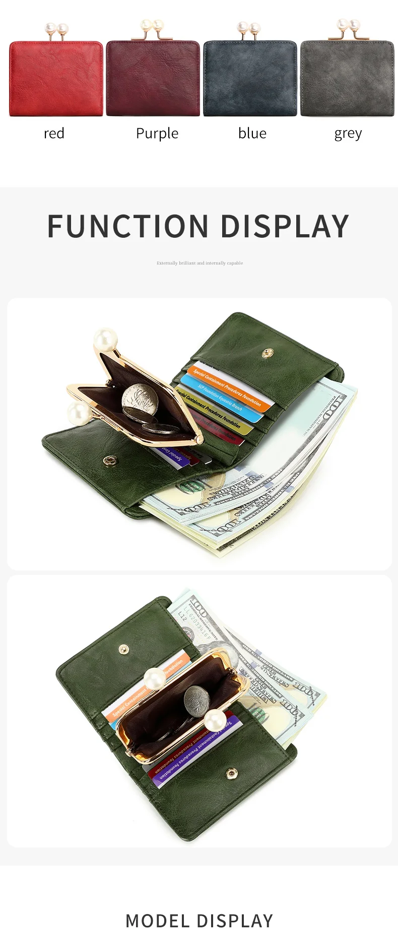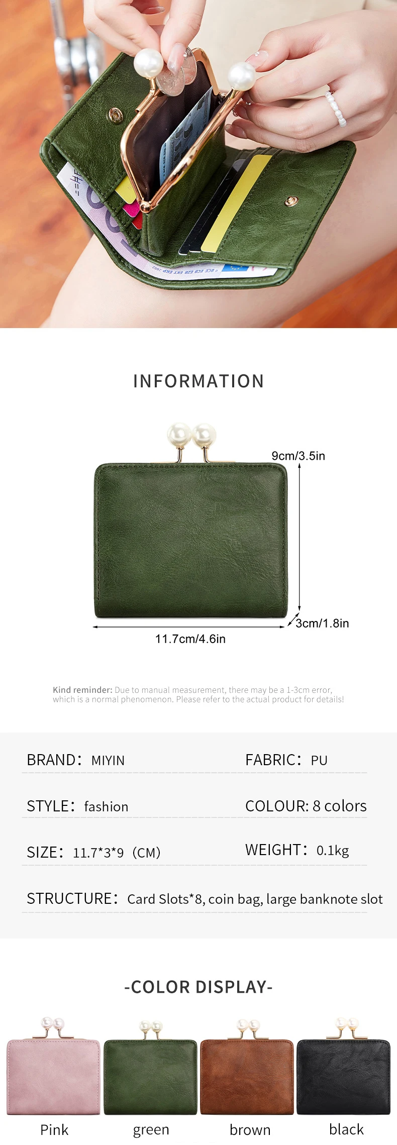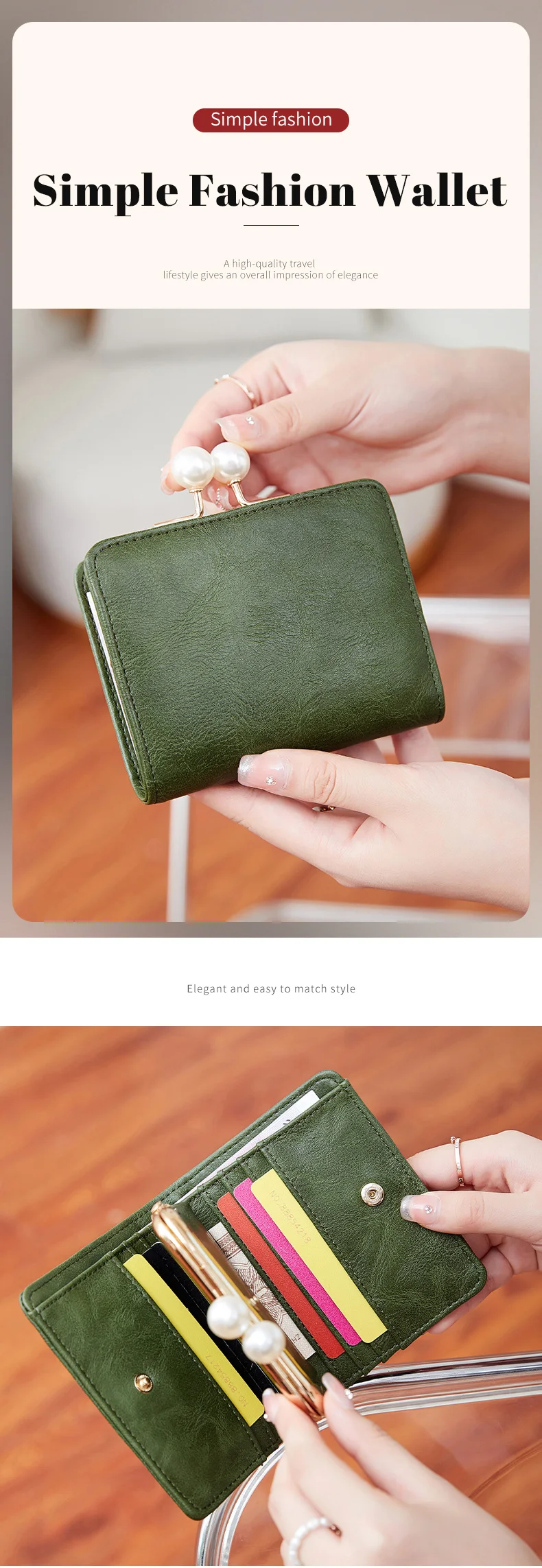 Xajzpa Women's Wallet Short Compact Three Layer Large Capacity Retro Pearl Wallet High Quality PU Leather Multi Card Seat/Coin Zero Wallet