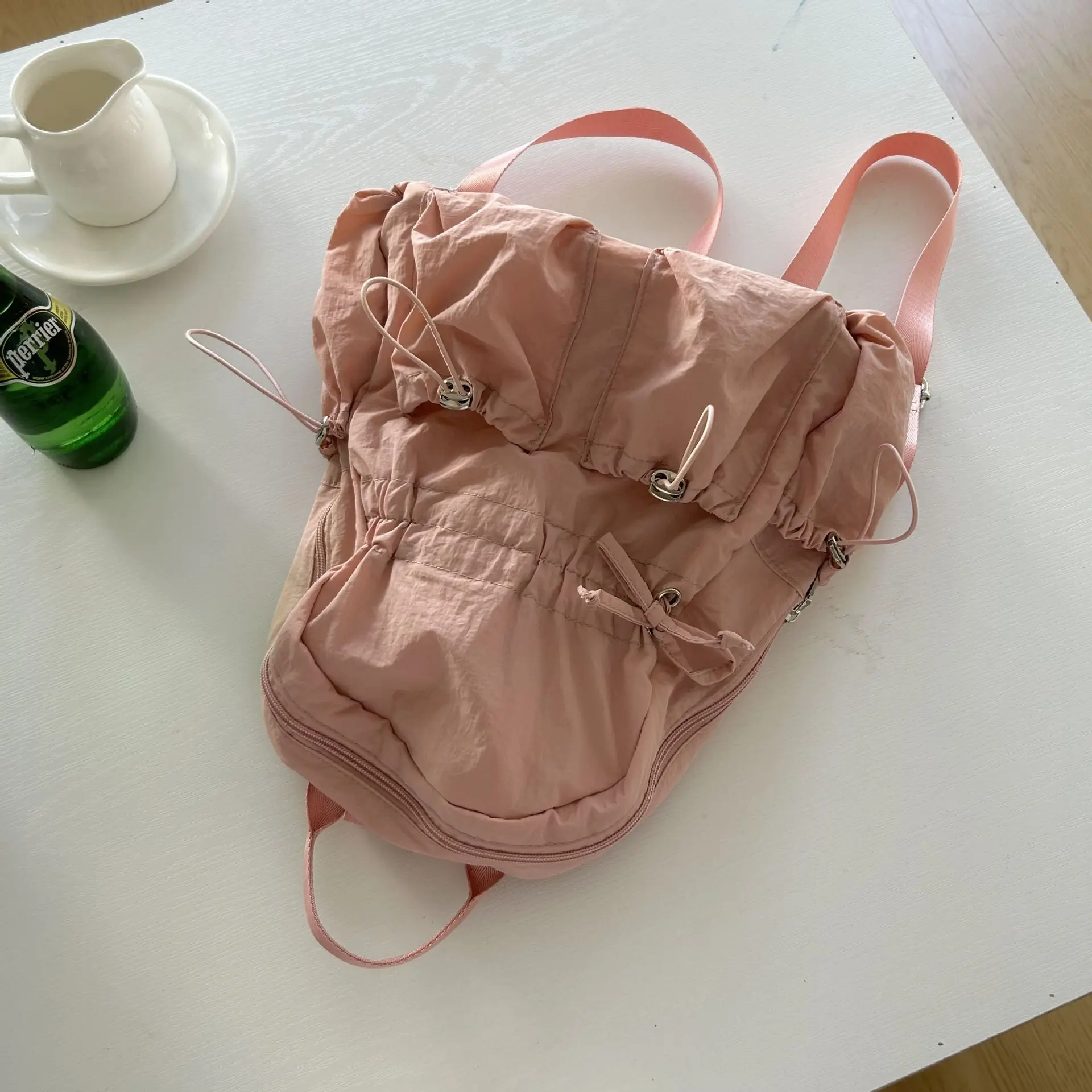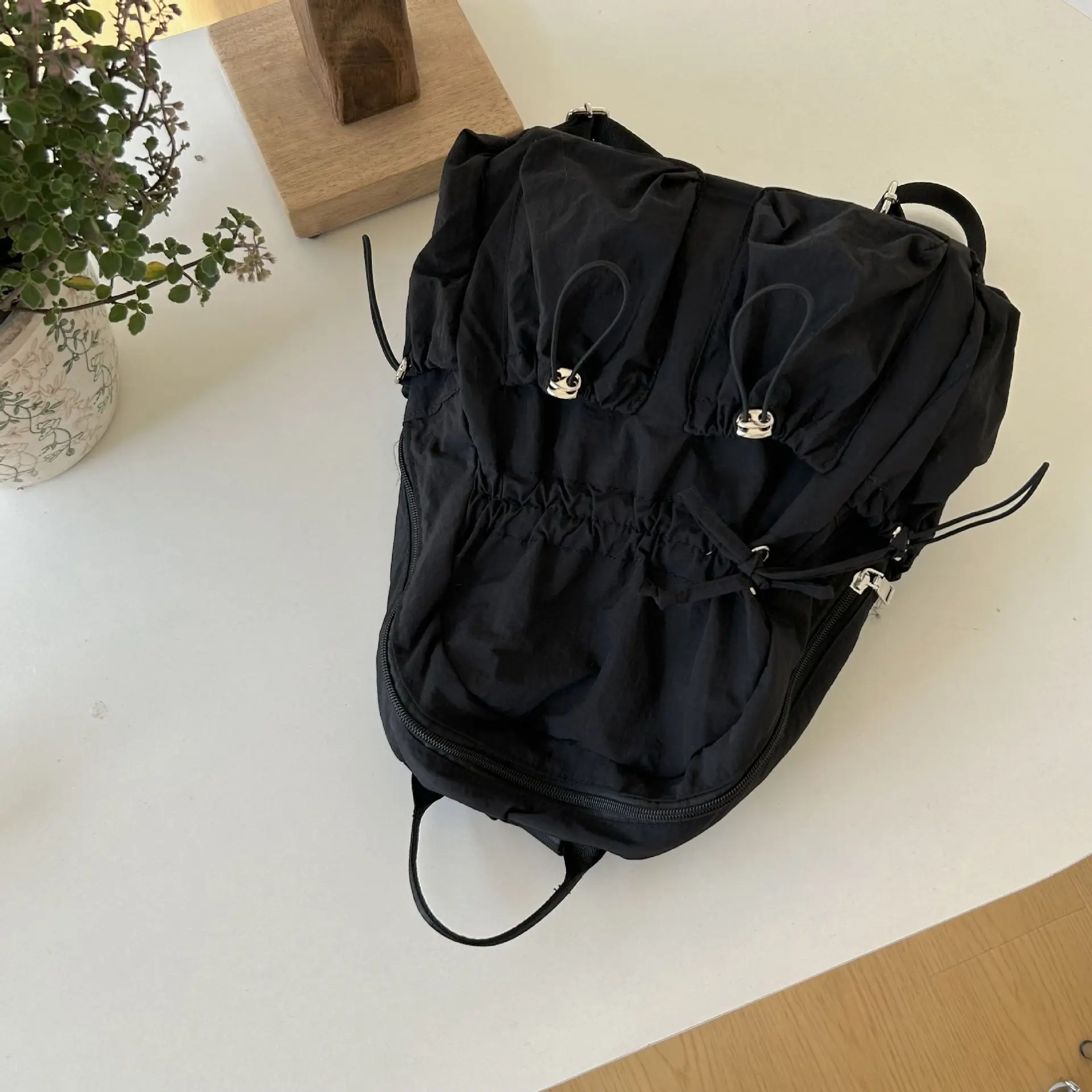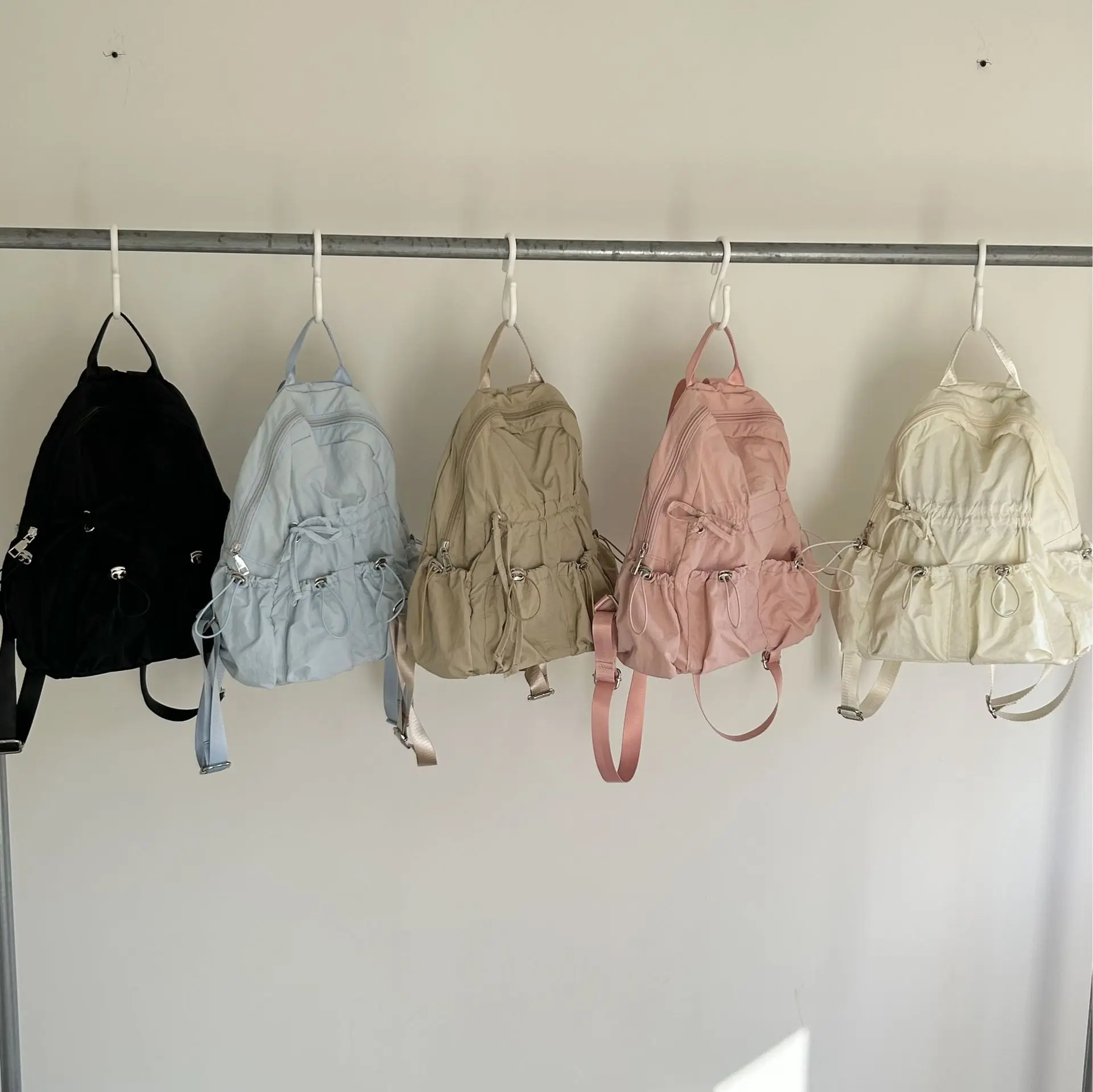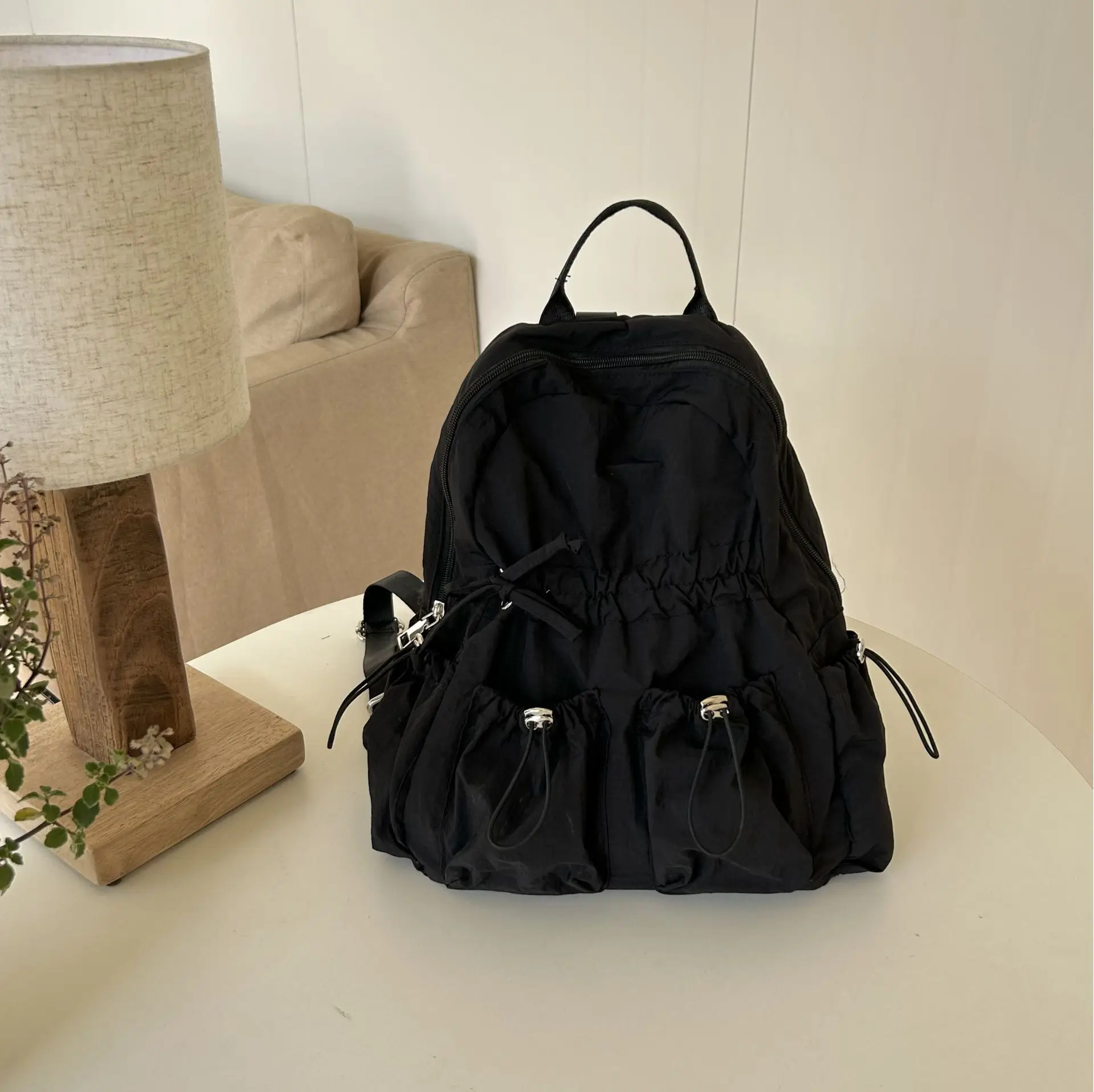Korean Simple Nylon Summer Beach Pleated Women Backpack Students School Girl Backpack Travel Commuter Backpacks for Women