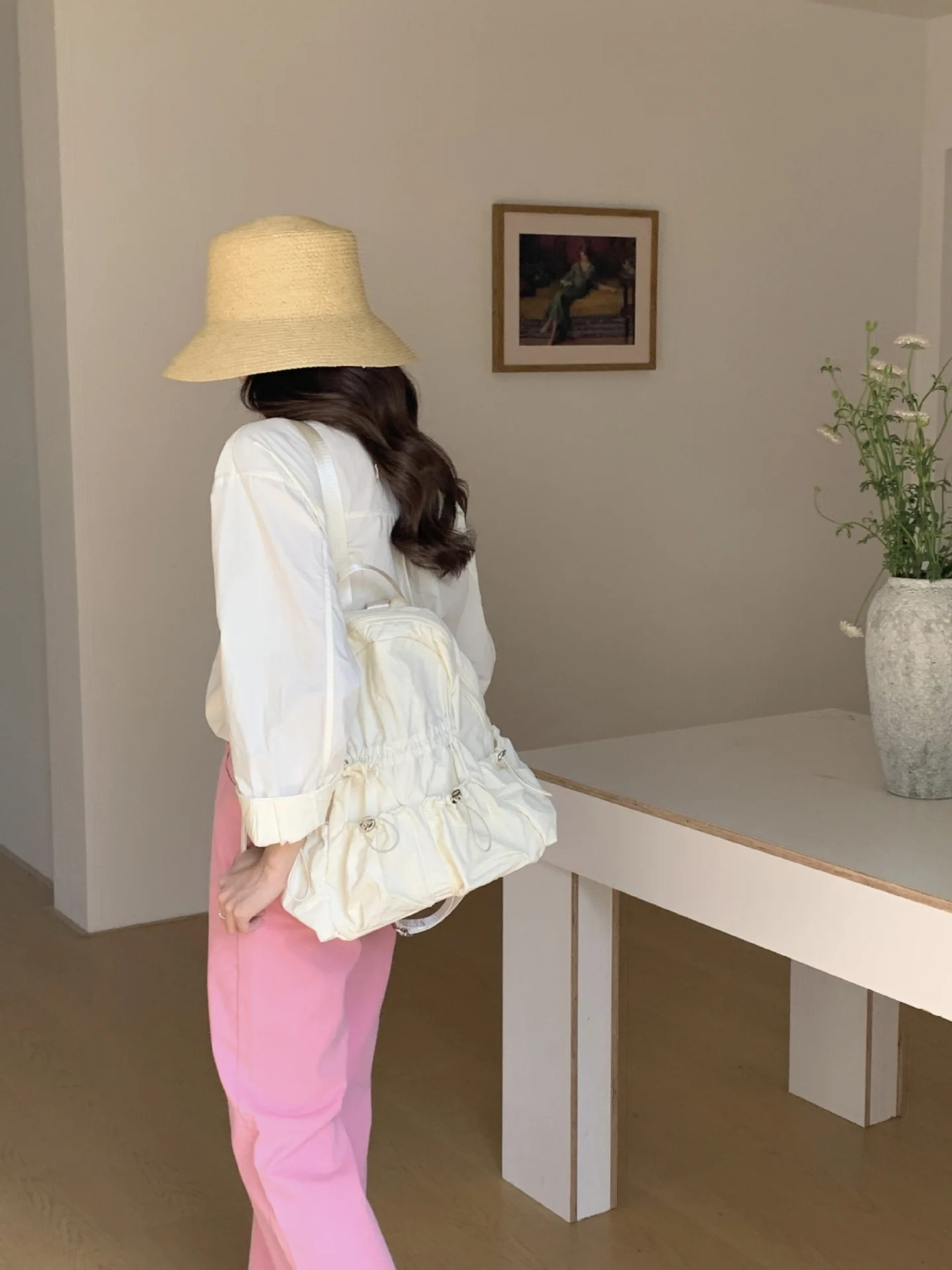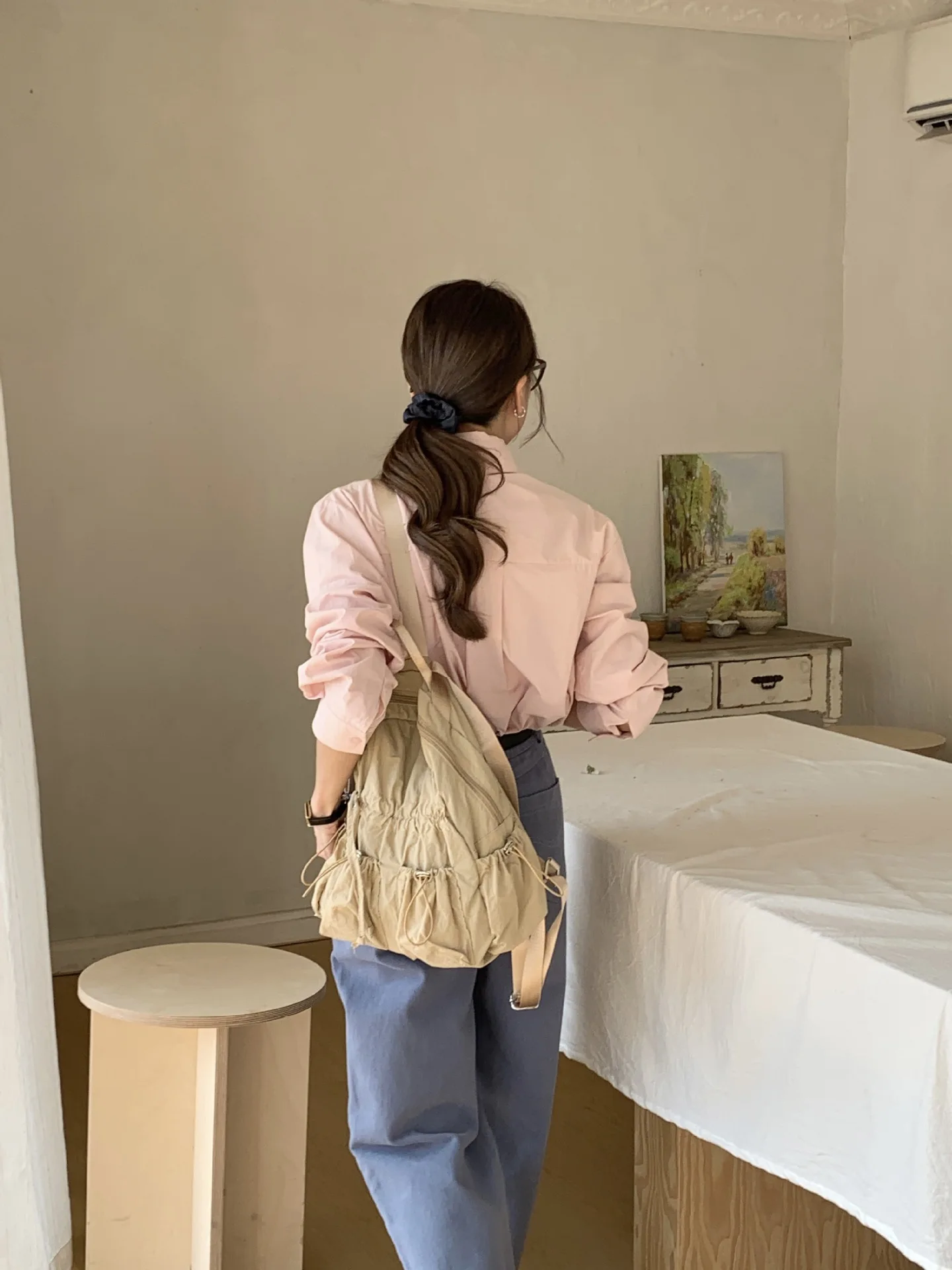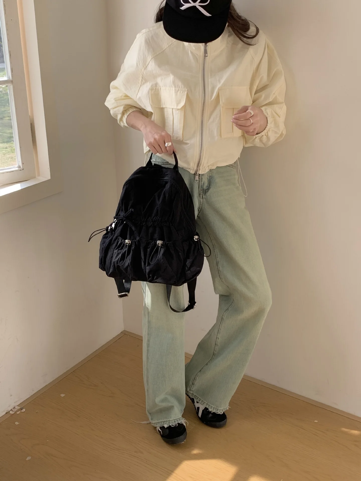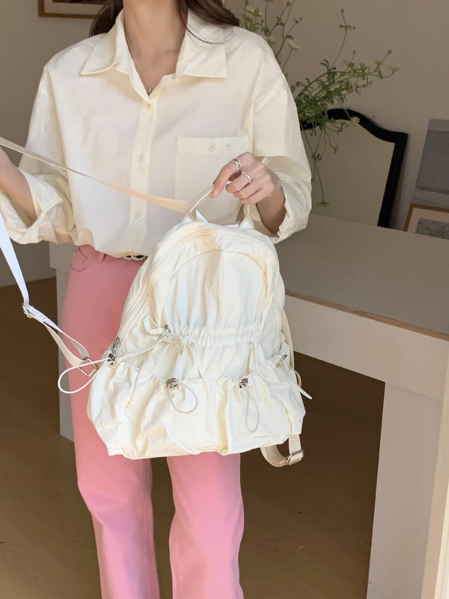 Korean Simple Nylon Summer Beach Pleated Women Backpack Students School Girl Backpack Travel Commuter Backpacks for Women