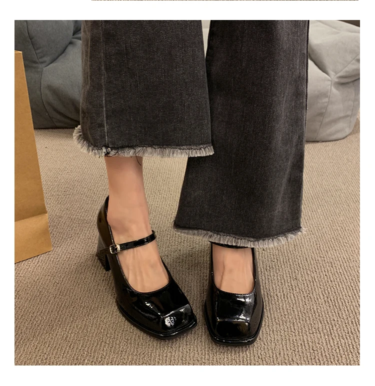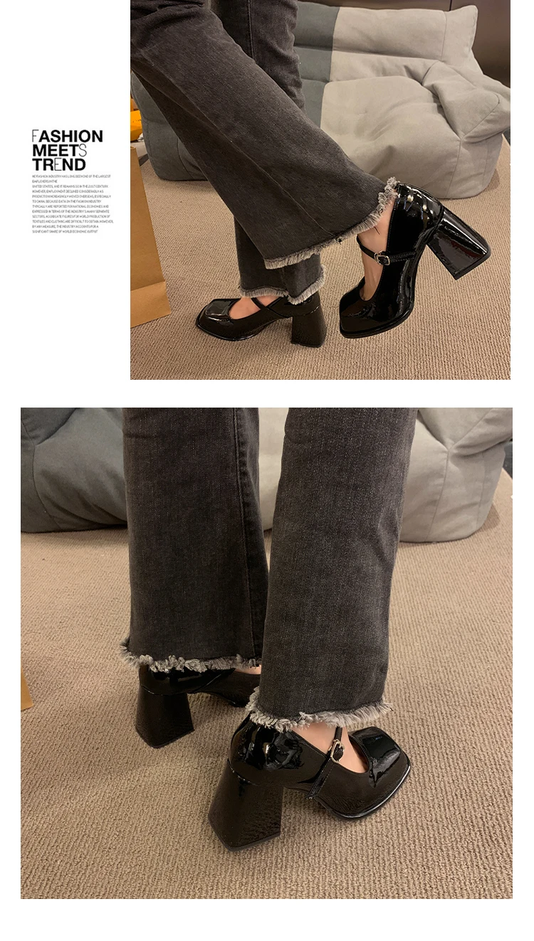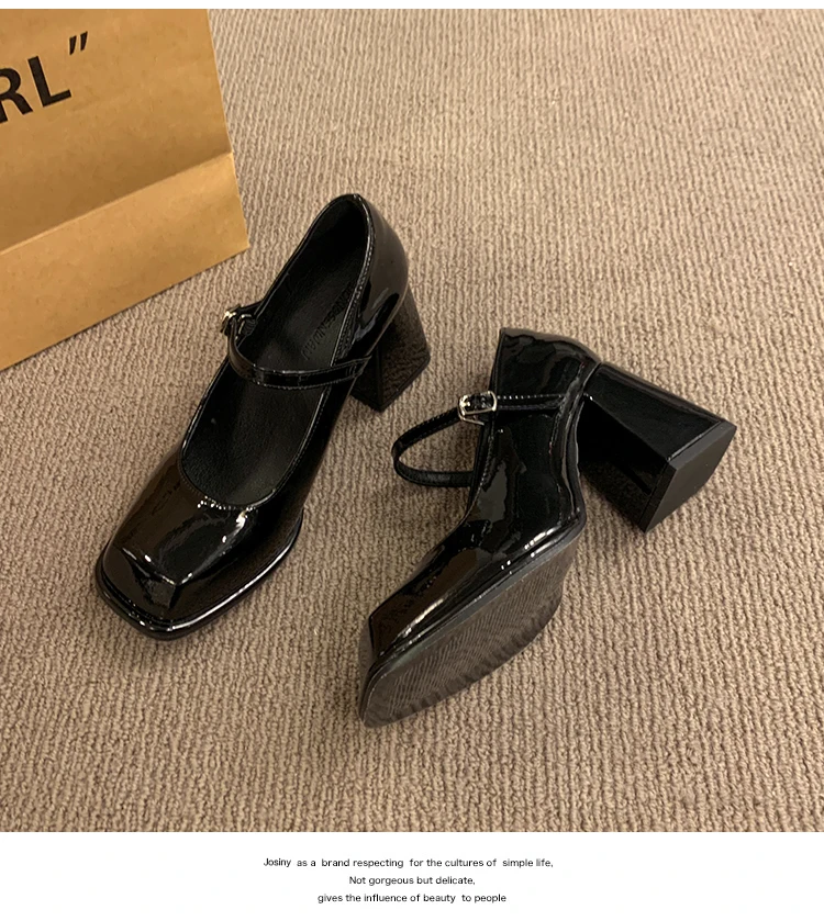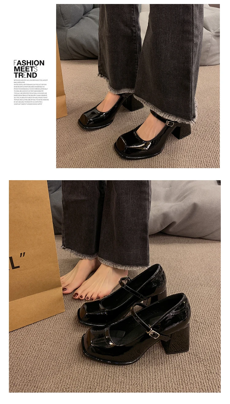 Xajzpa Black Heels For Women Pumps Lolita Shoes Square Toe Sexy Sandals Footwear Chunky Black Beige Mary Jane Crossdressers Africa