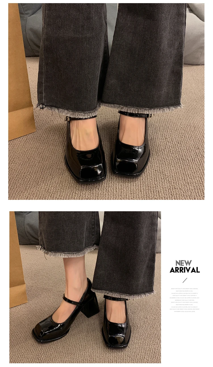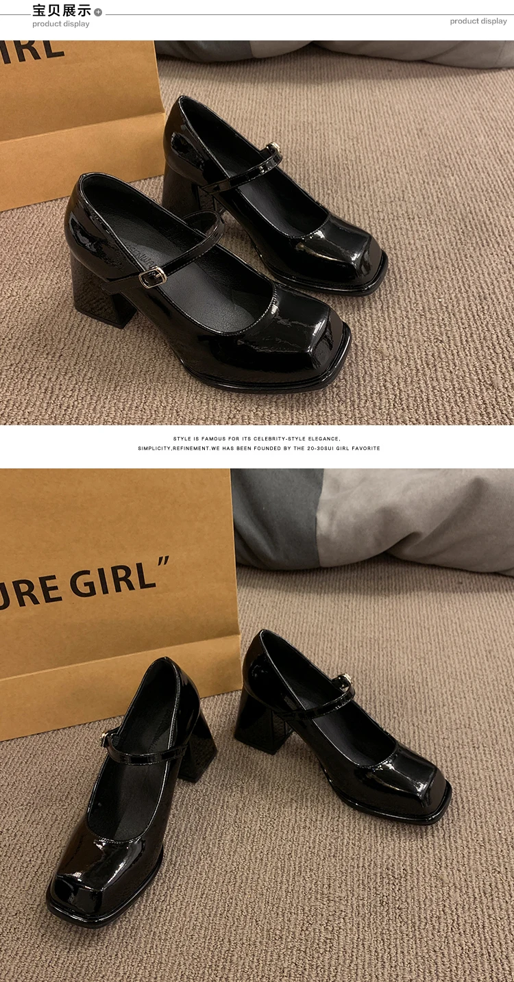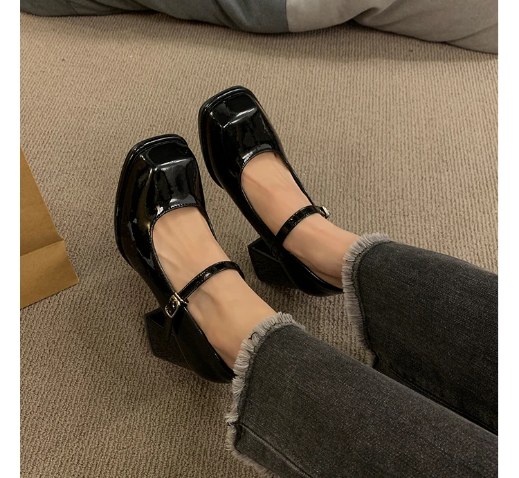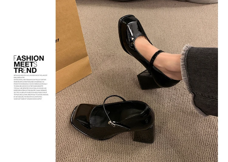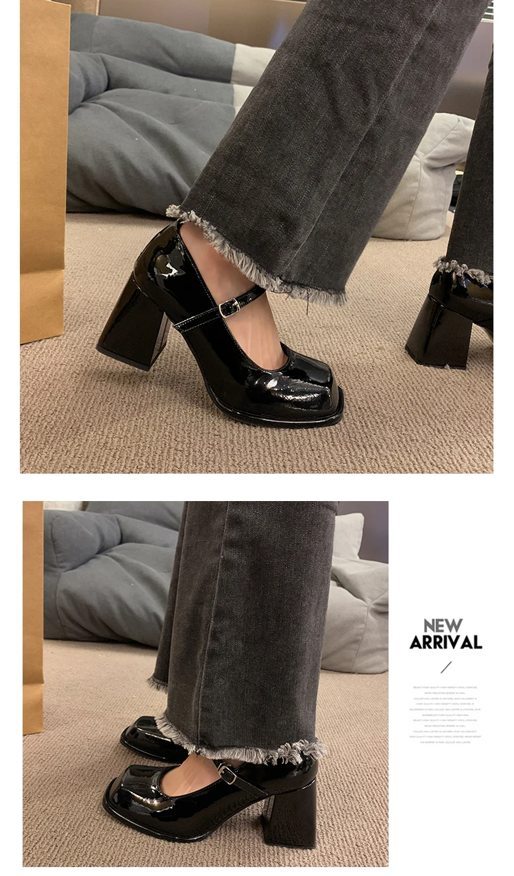 Xajzpa Black Heels For Women Pumps Lolita Shoes Square Toe Sexy Sandals Footwear Chunky Black Beige Mary Jane Crossdressers Africa
