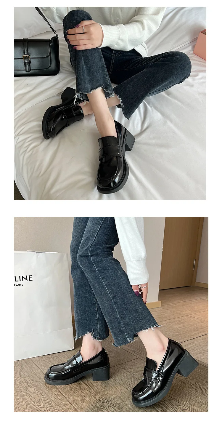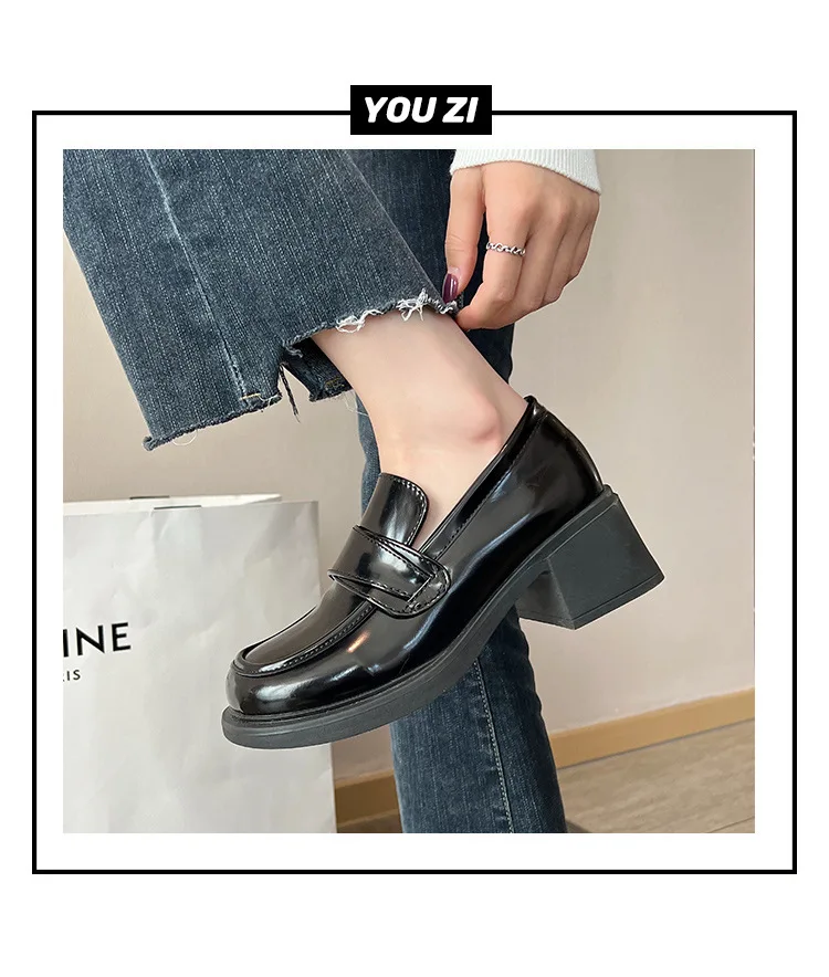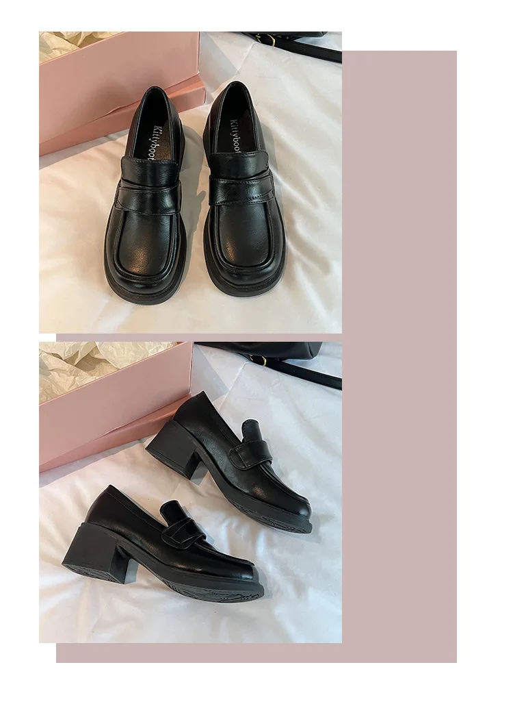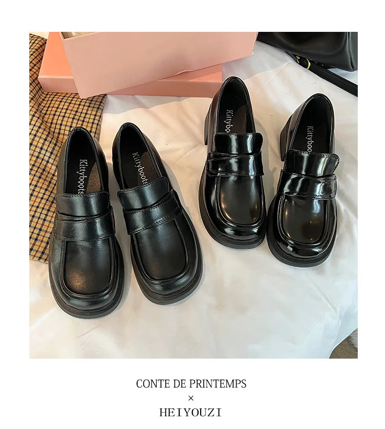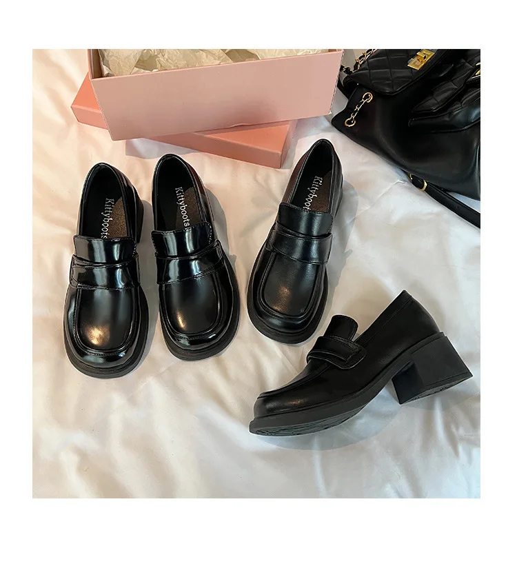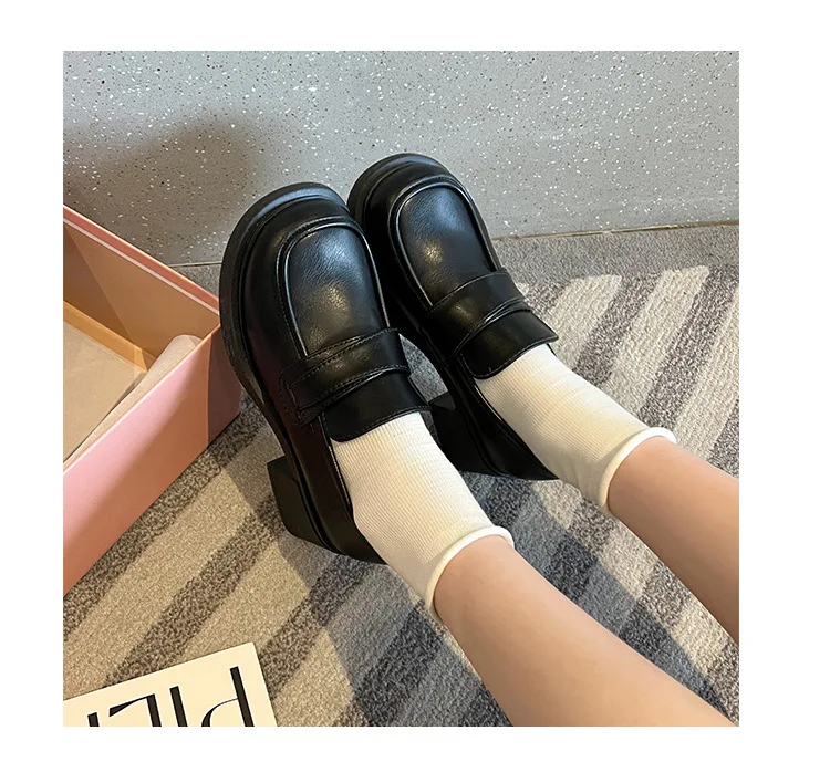 Xajzpa British Style Square Toe Shallow Mouth All-Match Winter Shoes Women Casual Female Sneakers Black Flats Ladies' Footwear Loafers