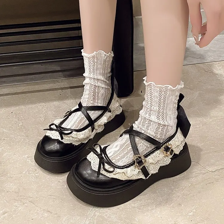 Xajzpa Cross Women's Shoes Round Toe Casual Female Sneakers Oxfords Loafers With Fur Clogs Platform Comfortable Leather Slip-on New
