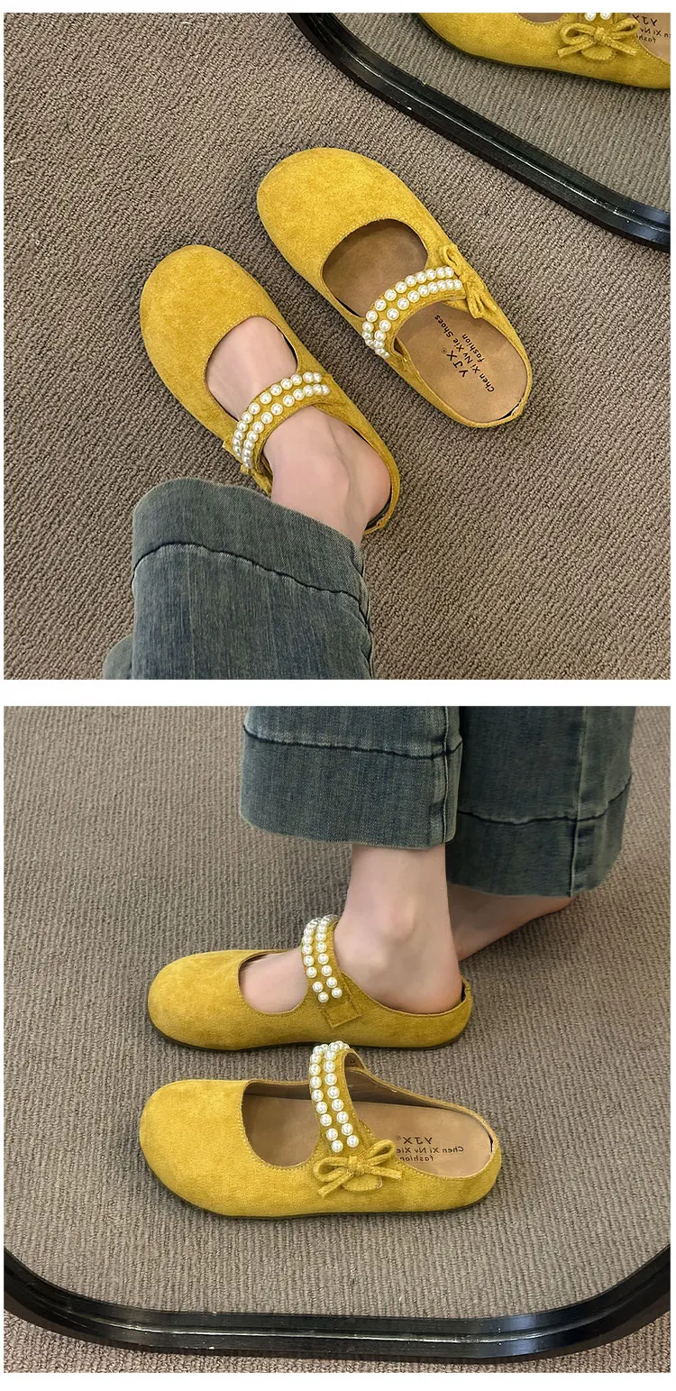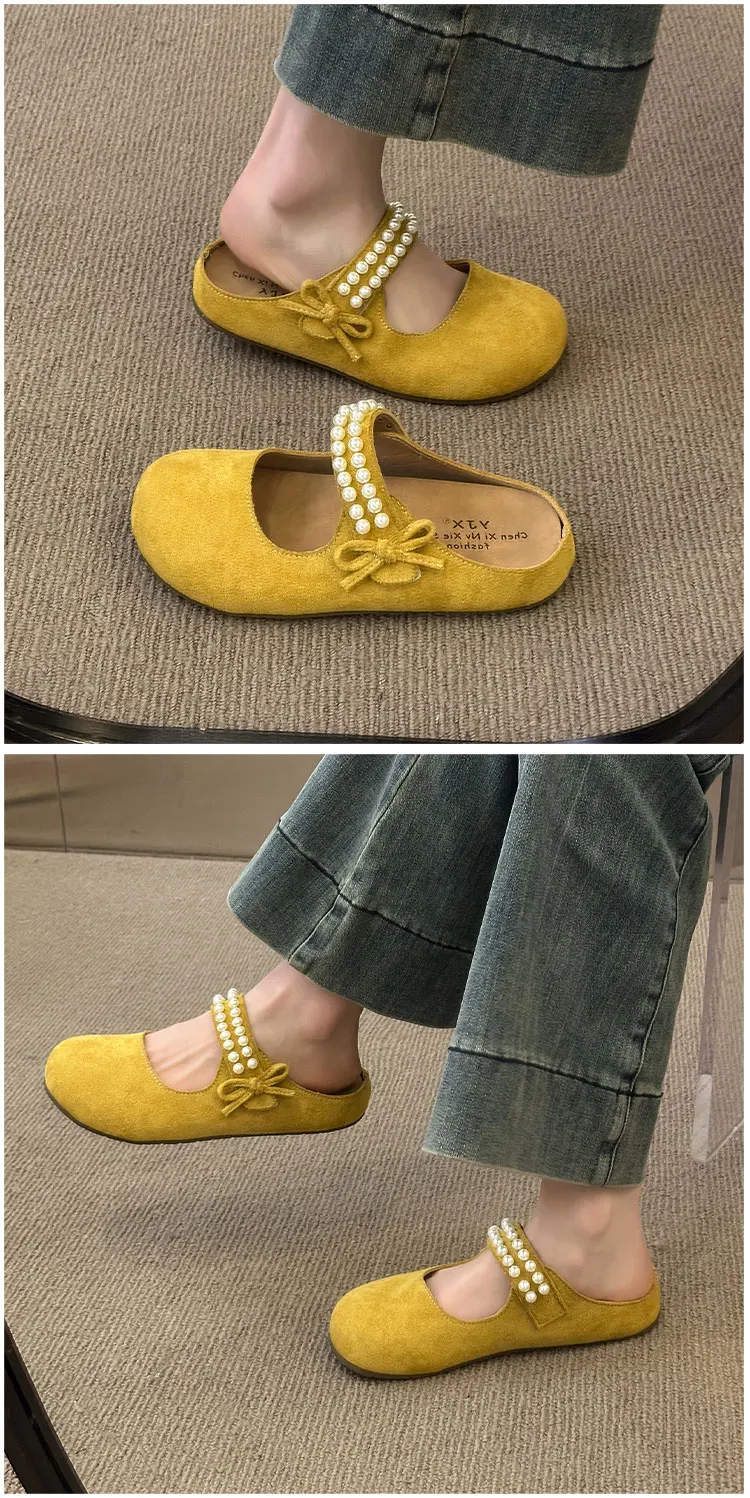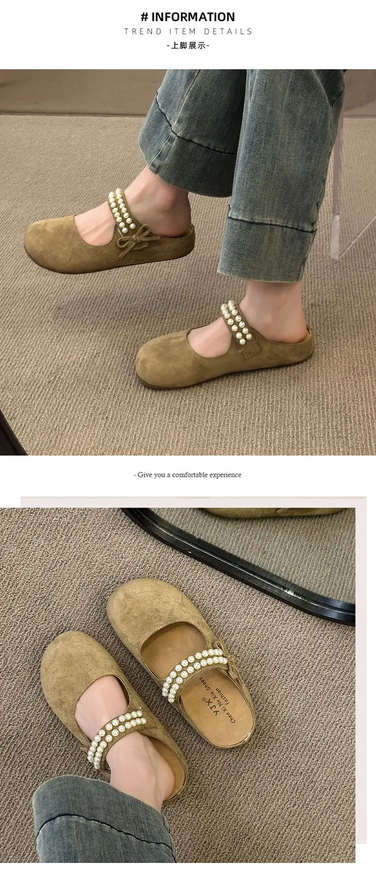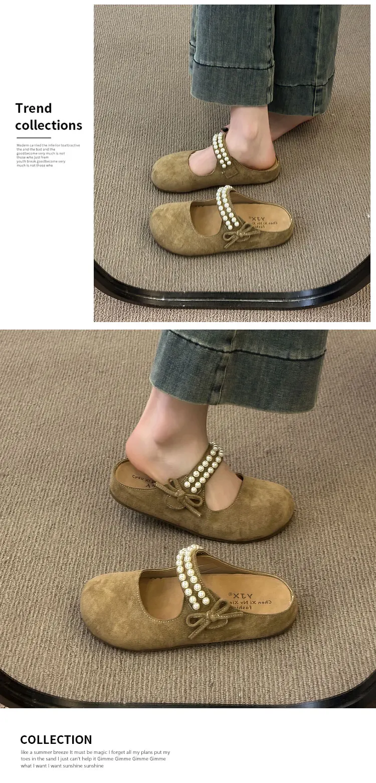 Xajzpa Flat Shoes Female Woman's Slippers Platform String Bead Slides Cover Toe 2025 Summer Soft Shoes Women Cover Toe Slippers Flat P
