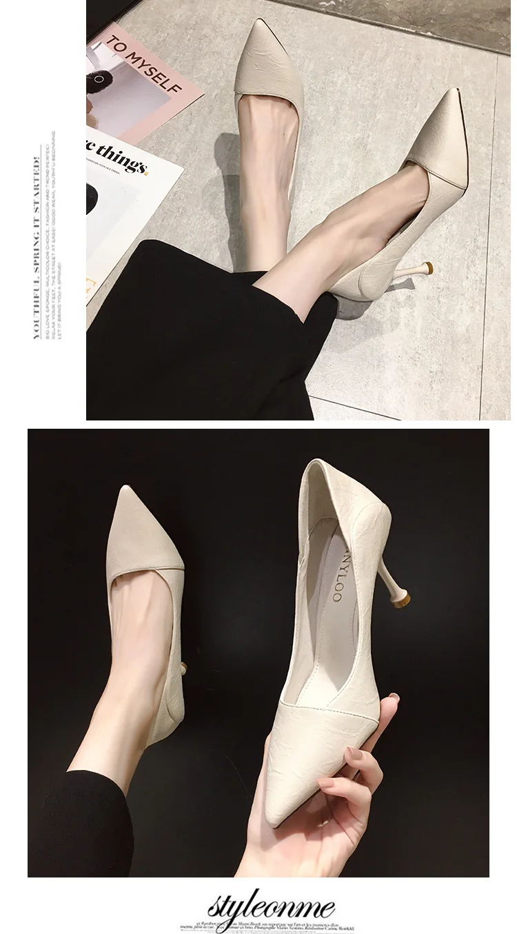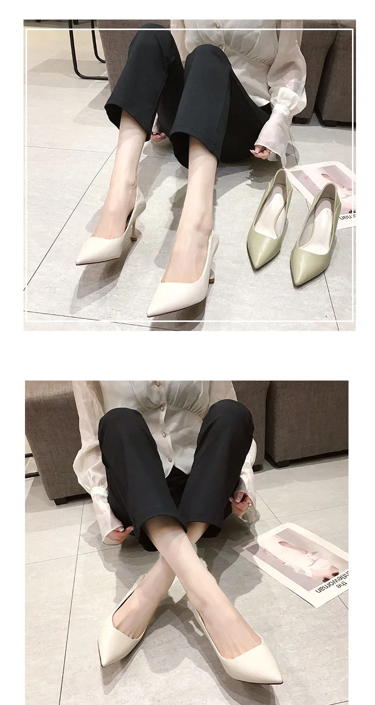 Xajzpa Gold  Heels Women's Shoes with Spikes 2025 Sandals Ladies Slip On Work Dress Professional Shallow Mouth Brief Pumps Lace-Up Poin
