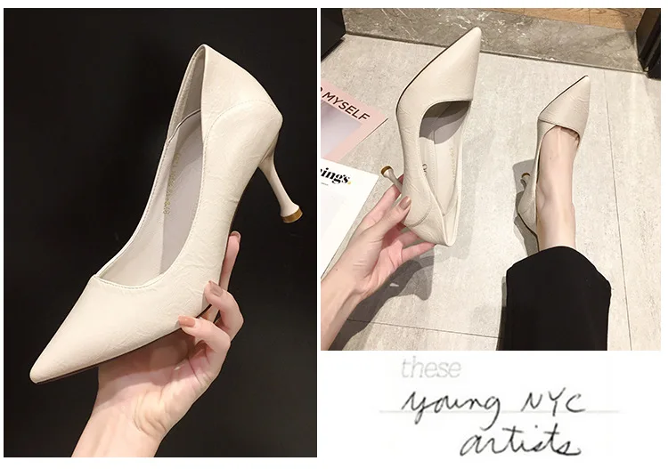 Xajzpa Gold Heels Women's Shoes with Spikes 2025 Sandals Ladies Slip On Work Dress Professional Shallow Mouth Brief Pumps Lace-Up Poin
