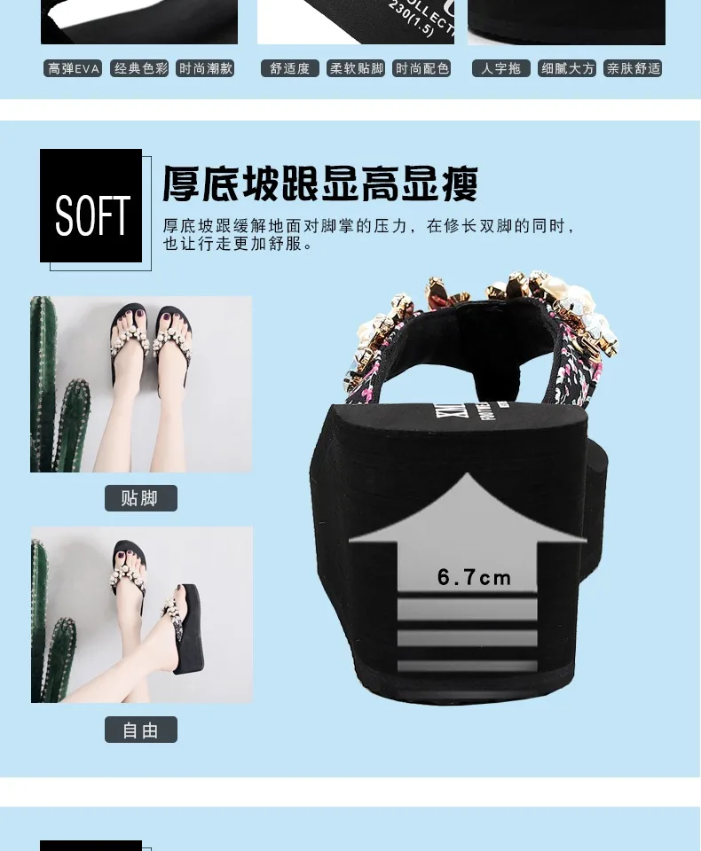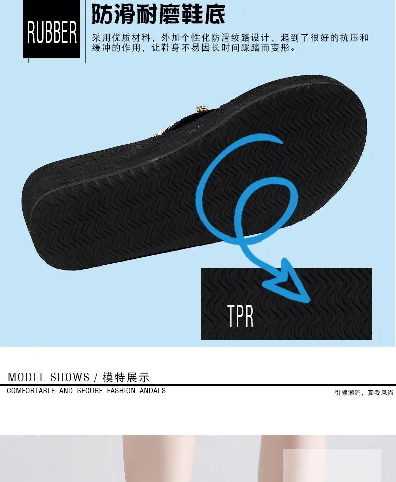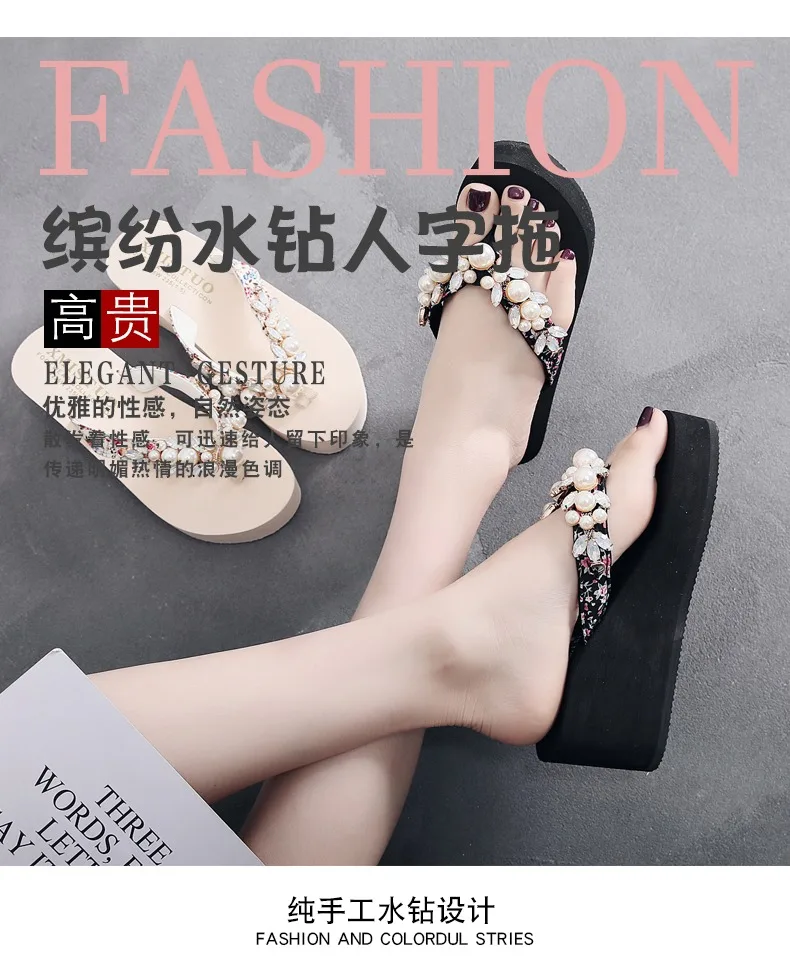 Xajzpa On A Wedge Slippers Casual String Bead Beach Shoes Platform Rubber Flip Flops Slides Slipers Women Heeled Mules Luxury Sabot Haw