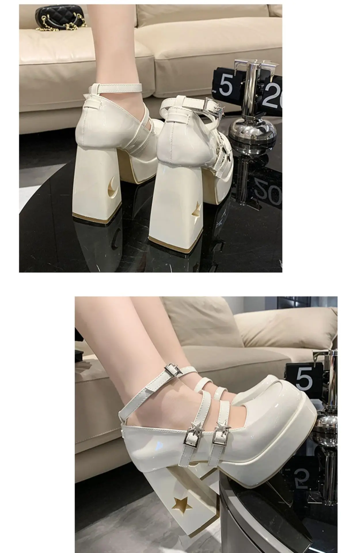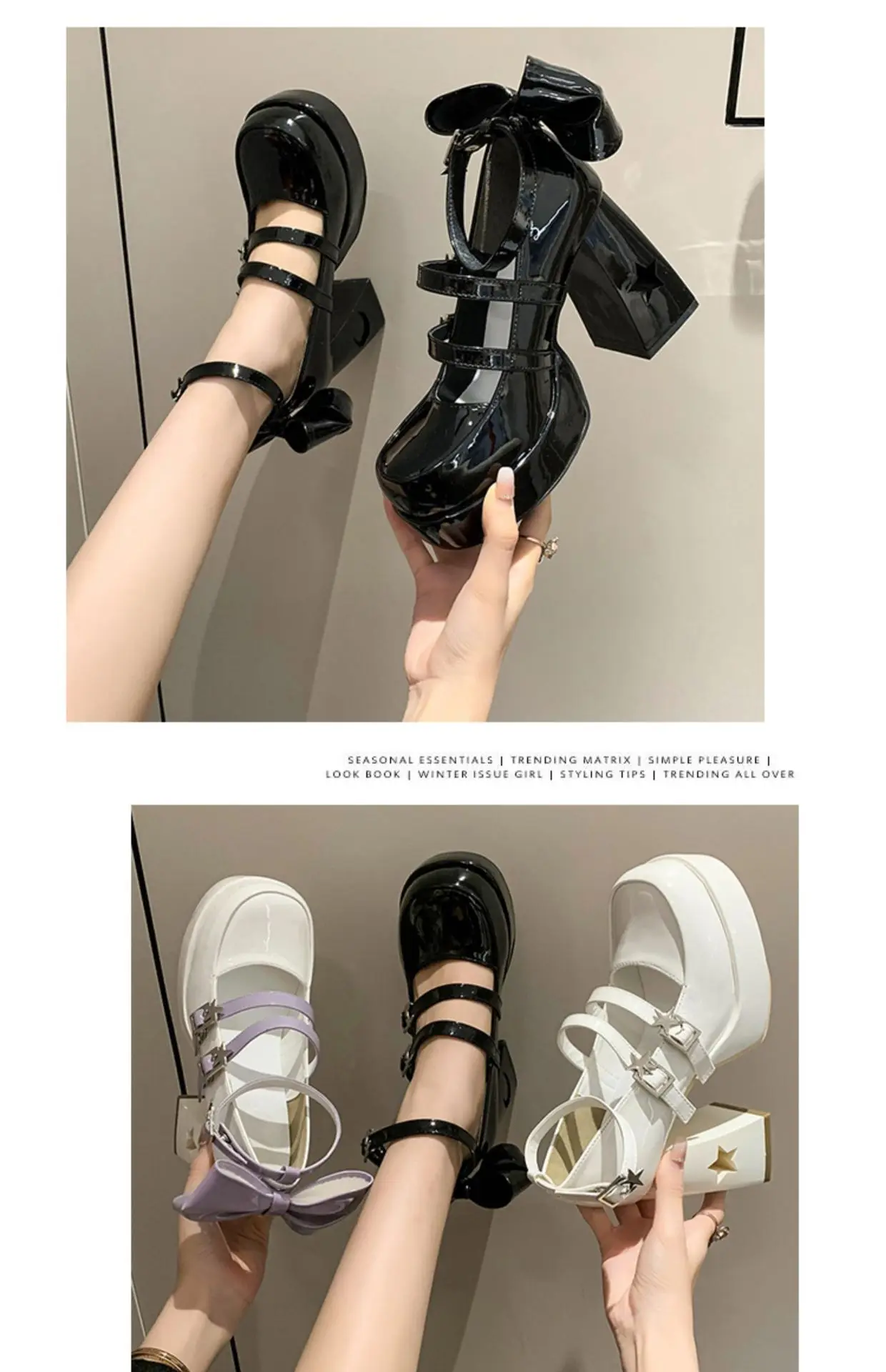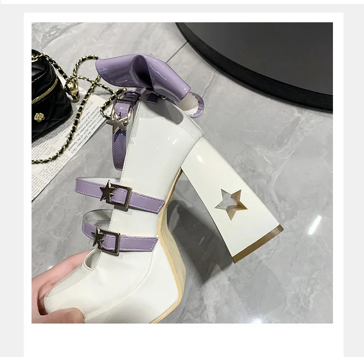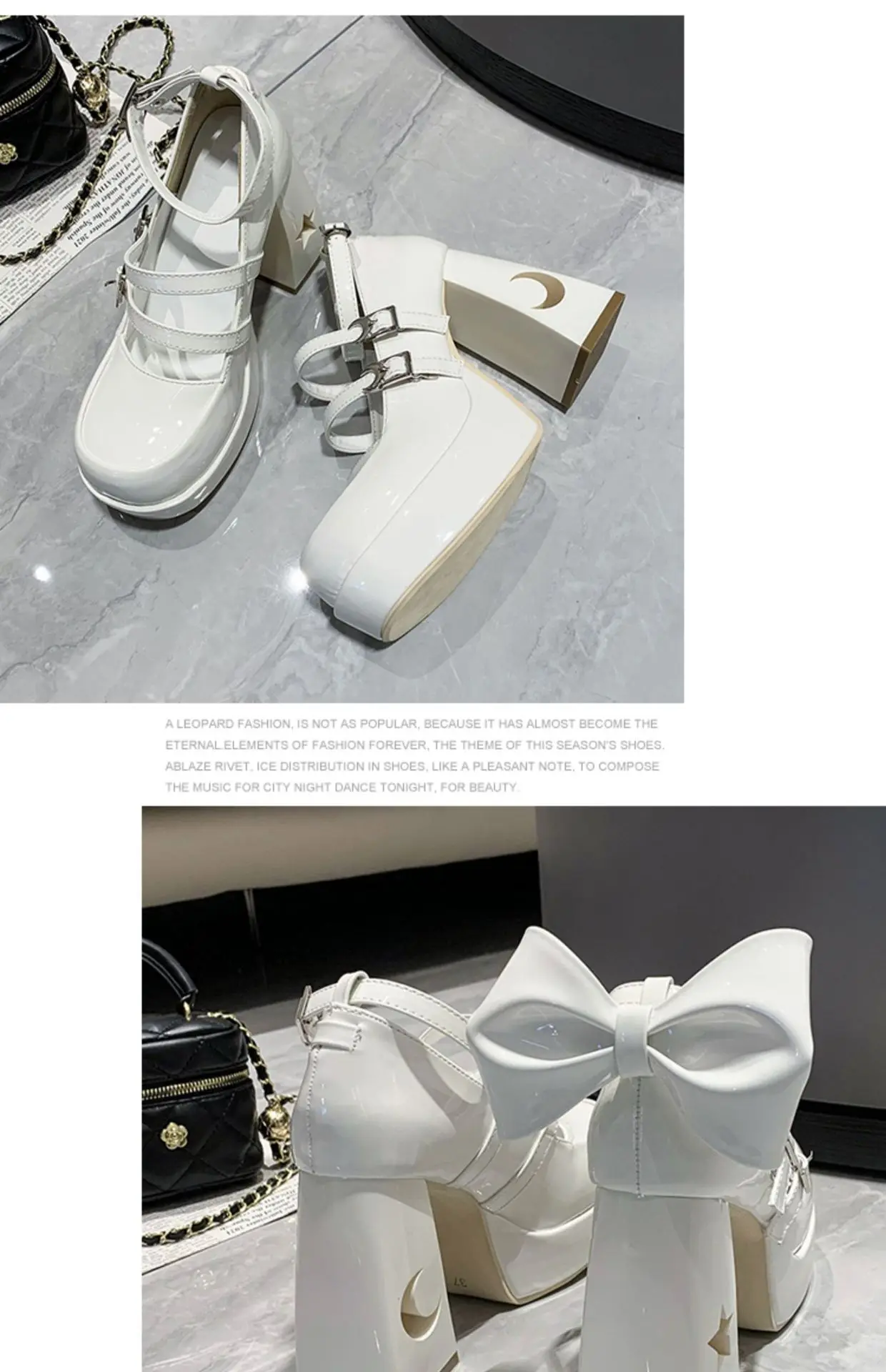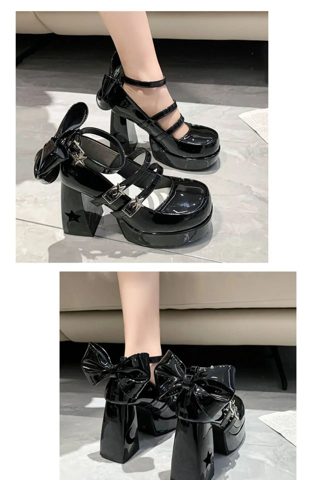 Xajzpa Pumps Lolita Shoes Platform Mary Jane Shoes Star Buckle Strap Women Cross-tied Pu Leather Girls Rivet Casual Shoes Kawaii
