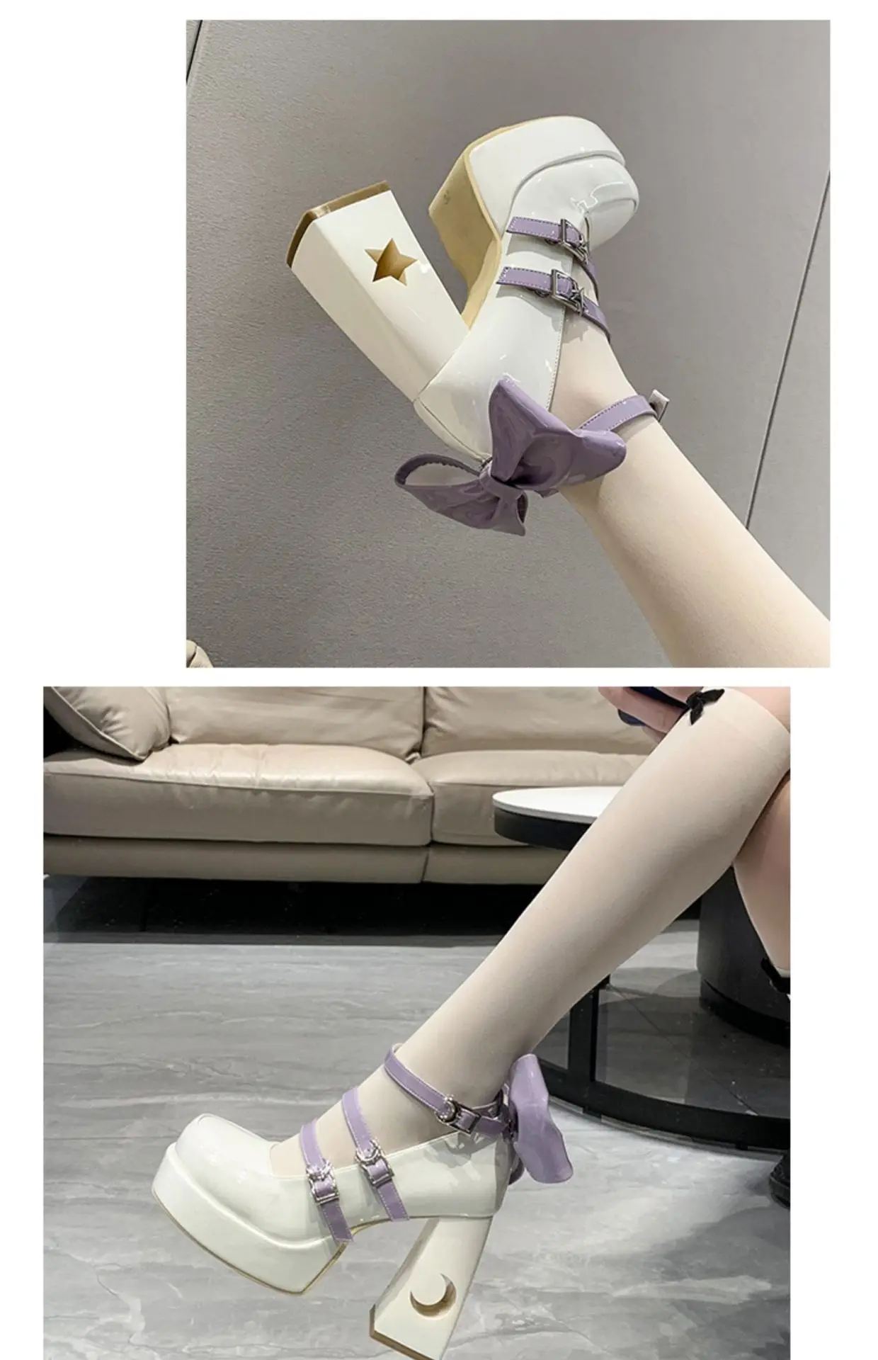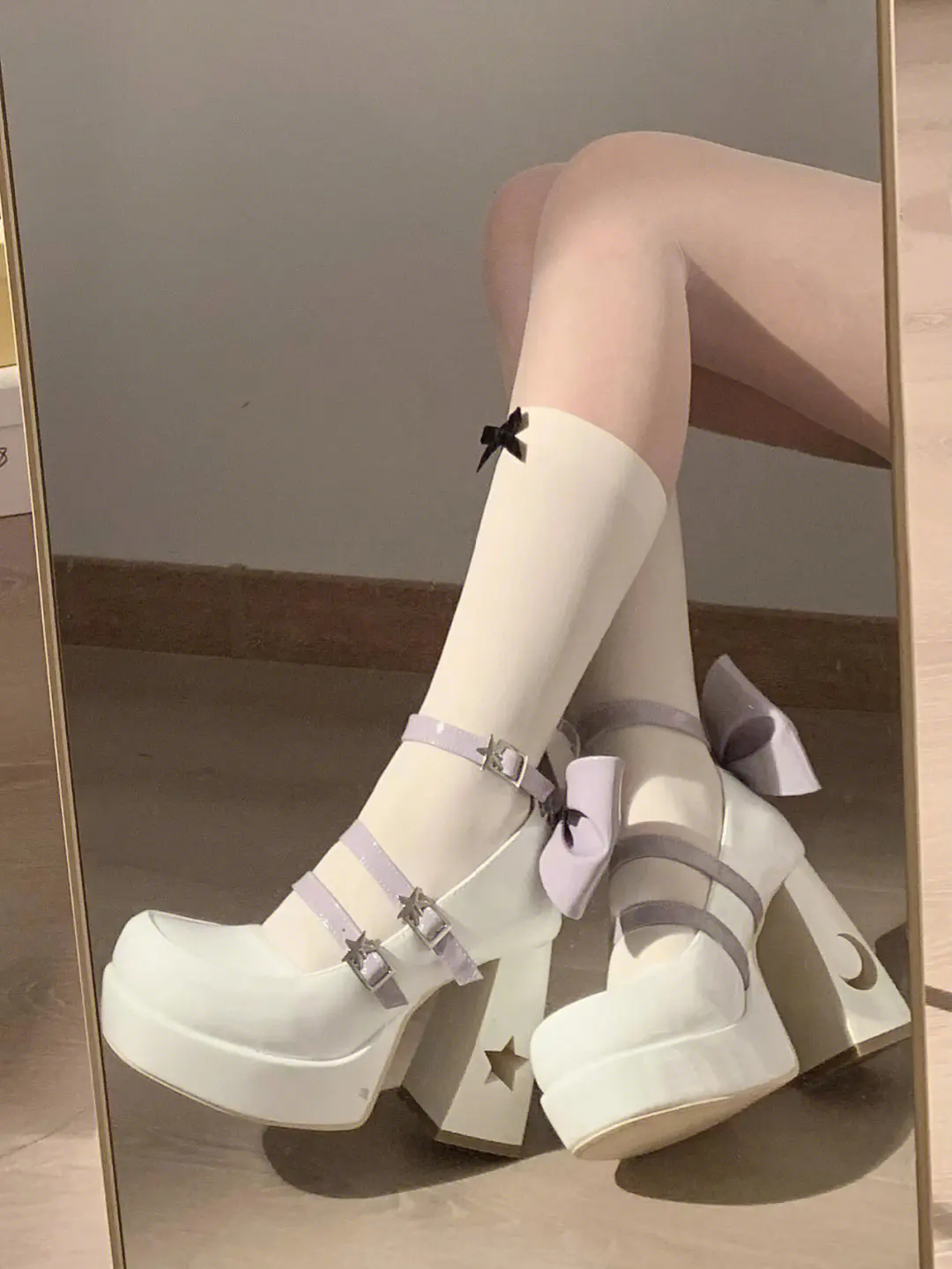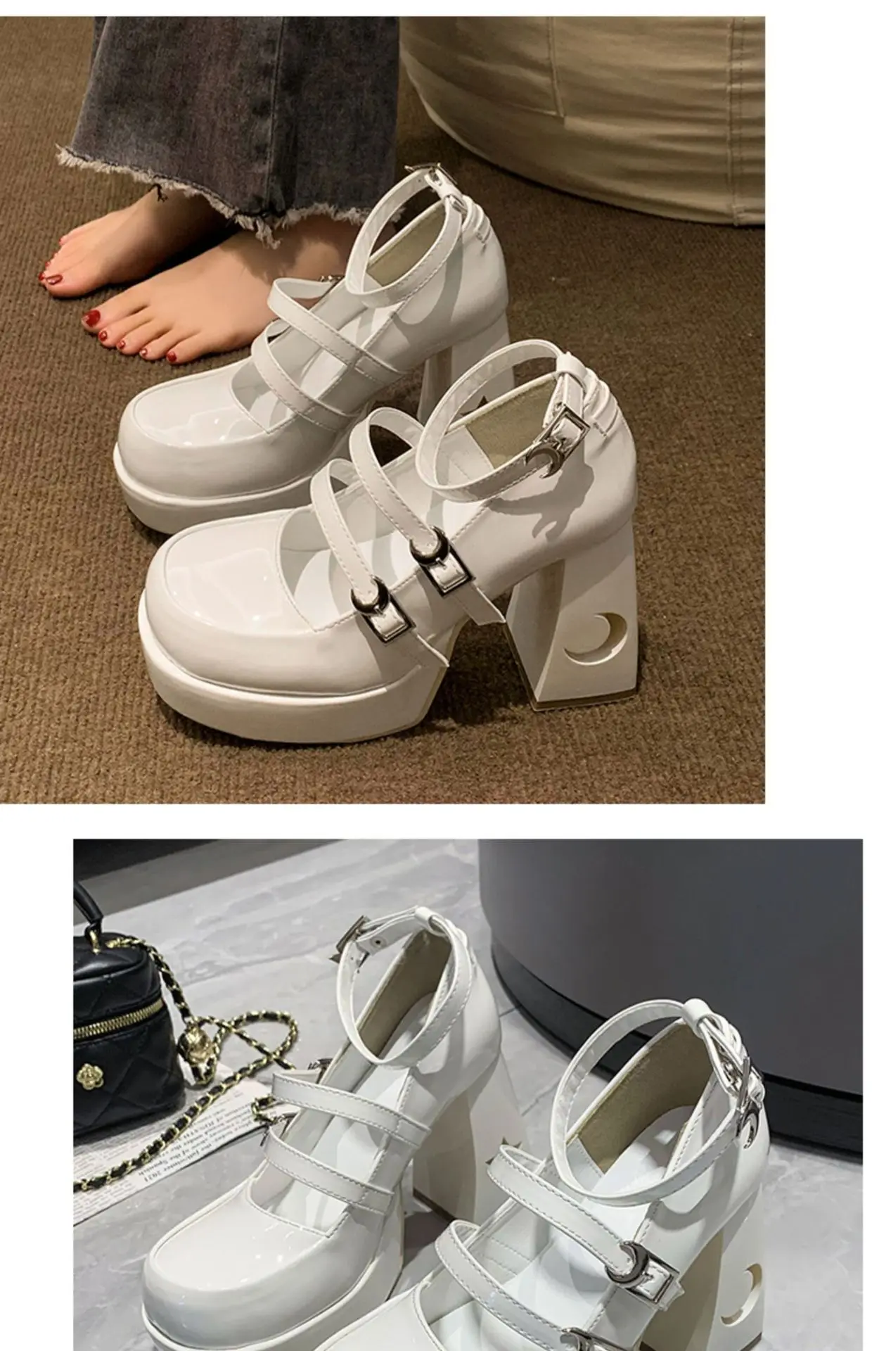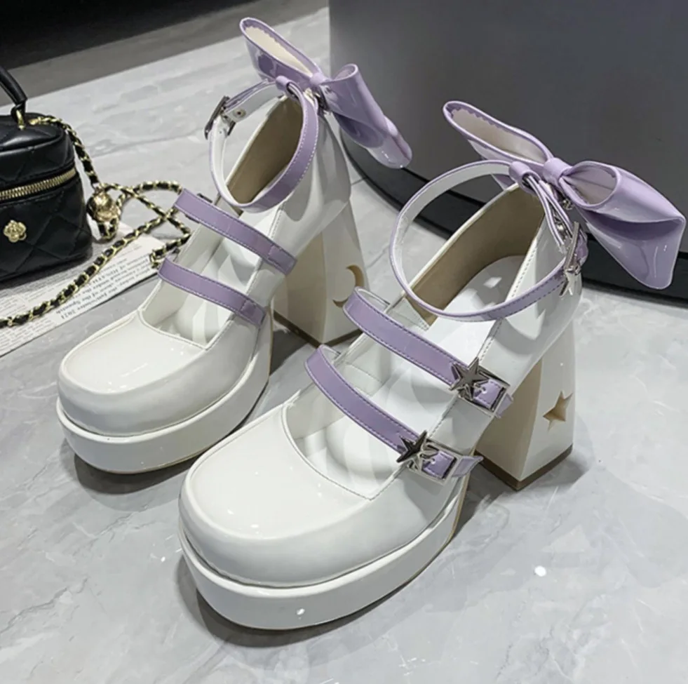 Xajzpa Pumps Lolita Shoes Platform Mary Jane Shoes Star Buckle Strap Women Cross-tied Pu Leather Girls Rivet Casual Shoes Kawaii