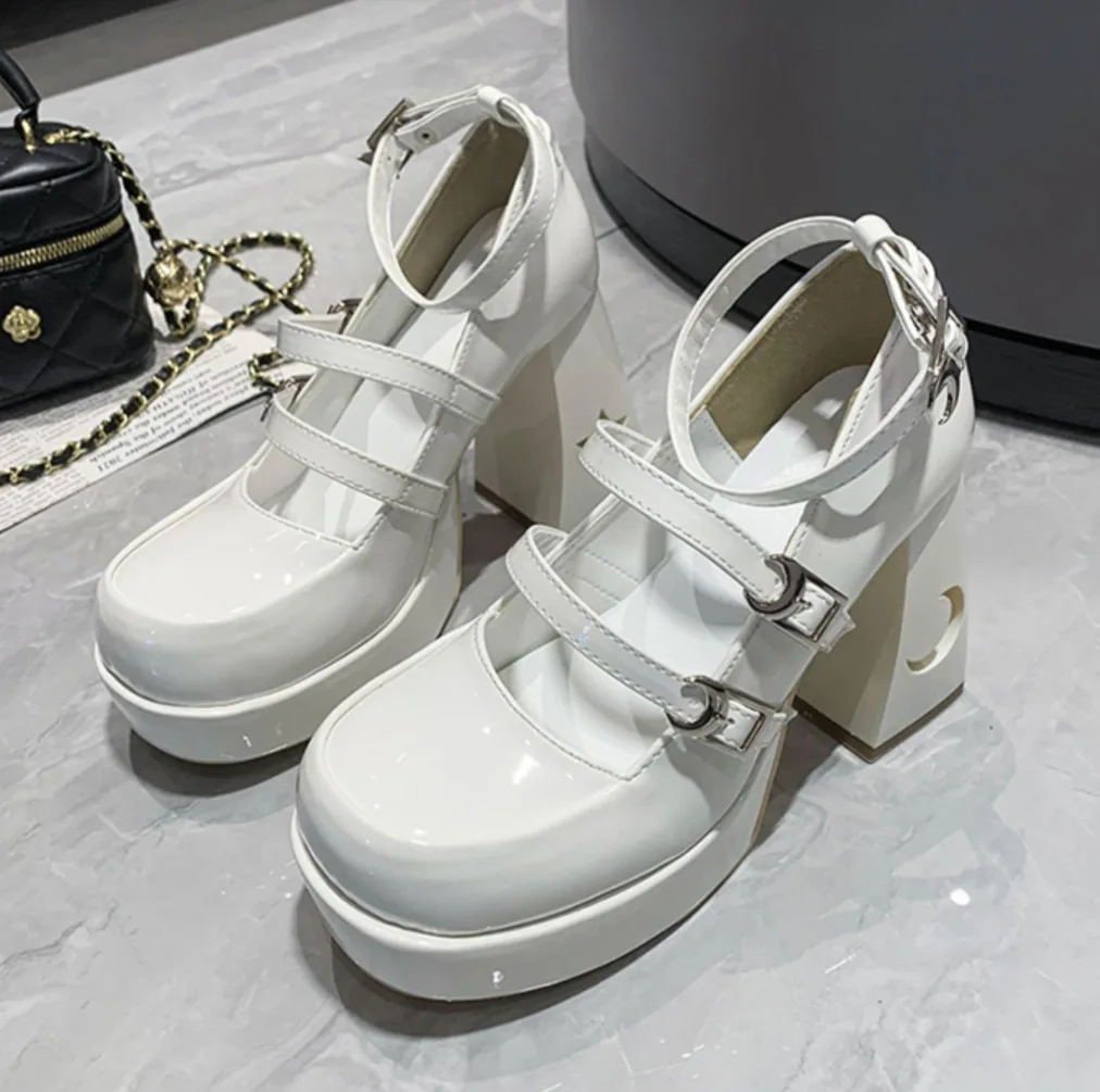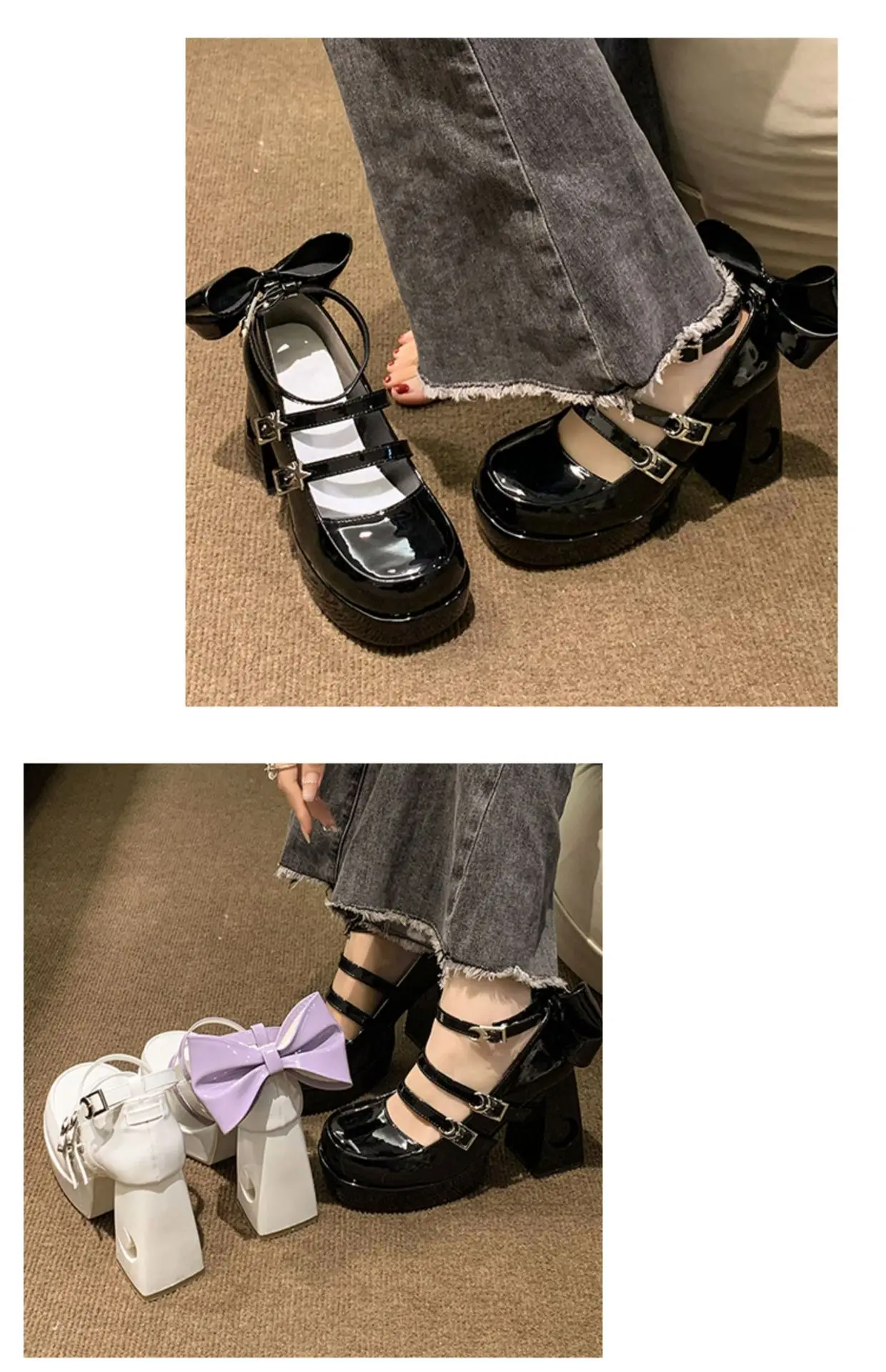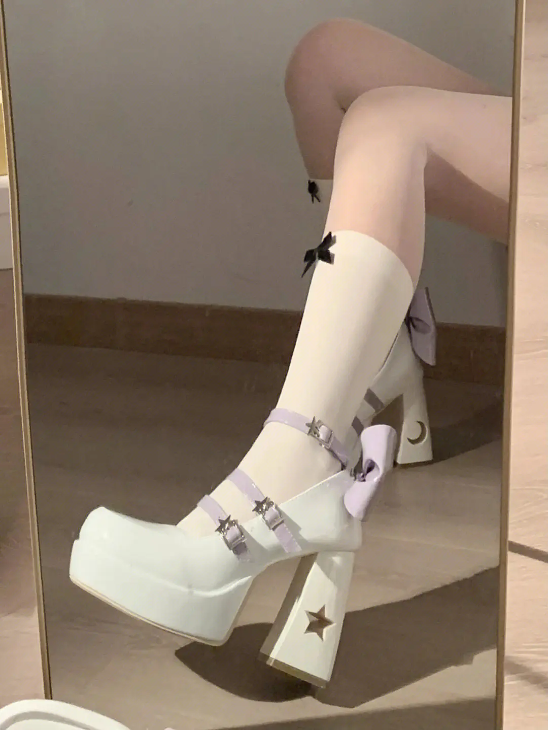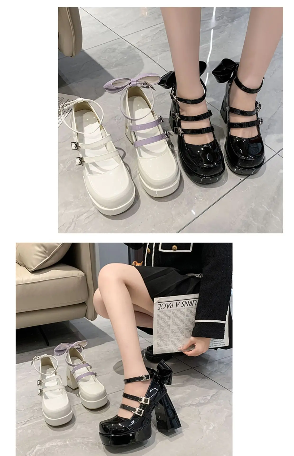Xajzpa Pumps Lolita Shoes Platform Mary Jane Shoes Star Buckle Strap Women Cross-tied Pu Leather Girls Rivet Casual Shoes Kawaii