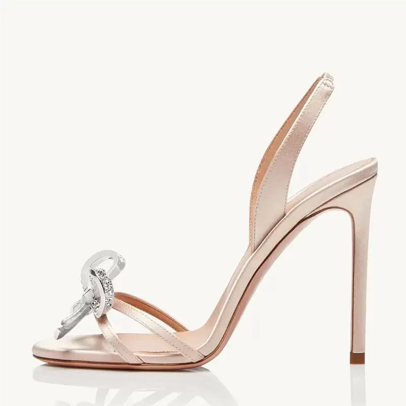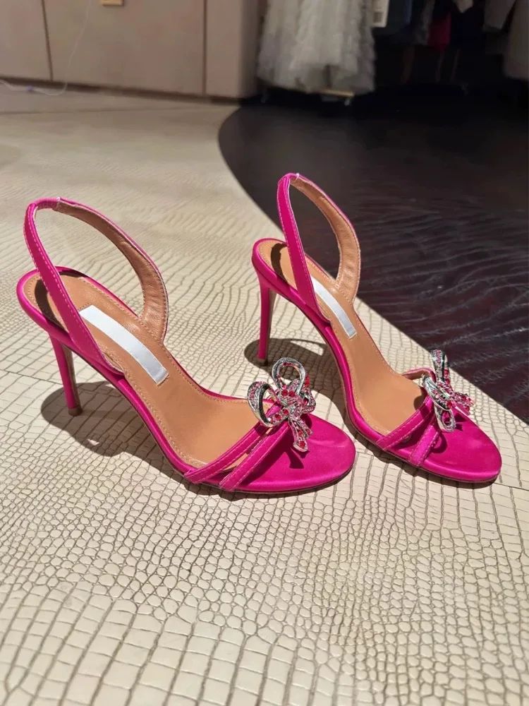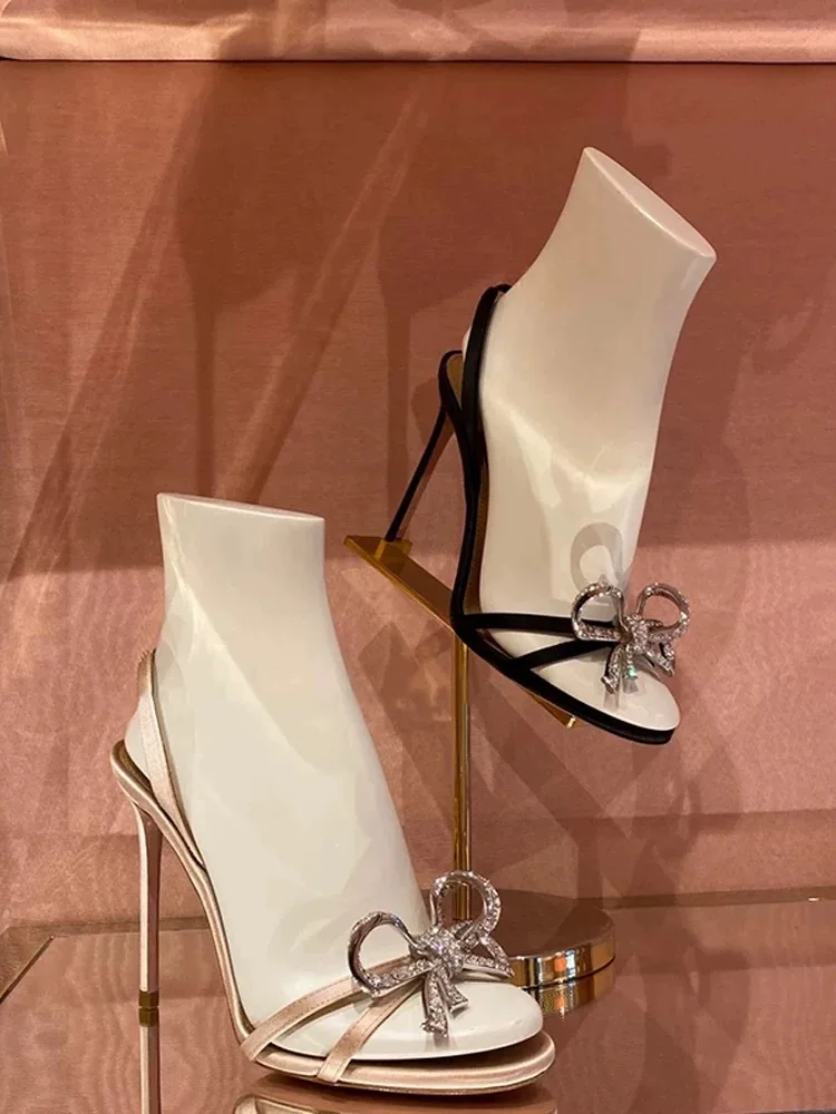 Xajzpa Sandals Black Shoes for Women Clear Heels Buckle Strap Large Size New Beige Bow Summer Girls Rhinestone Big Comfort Low