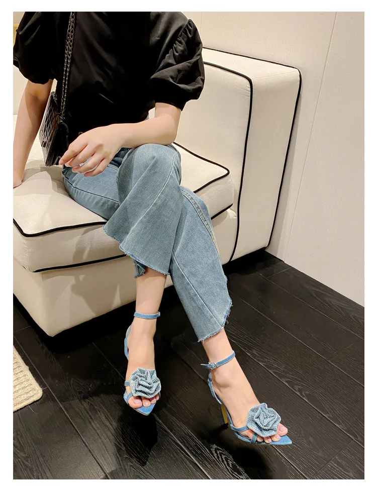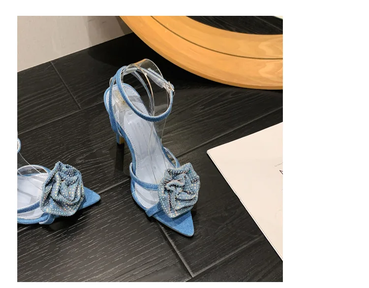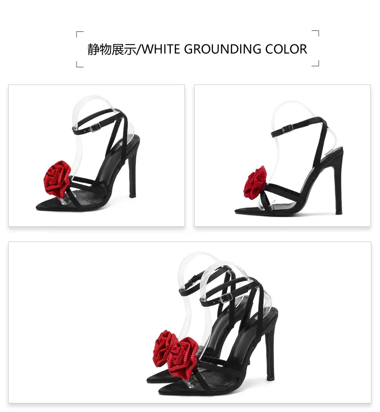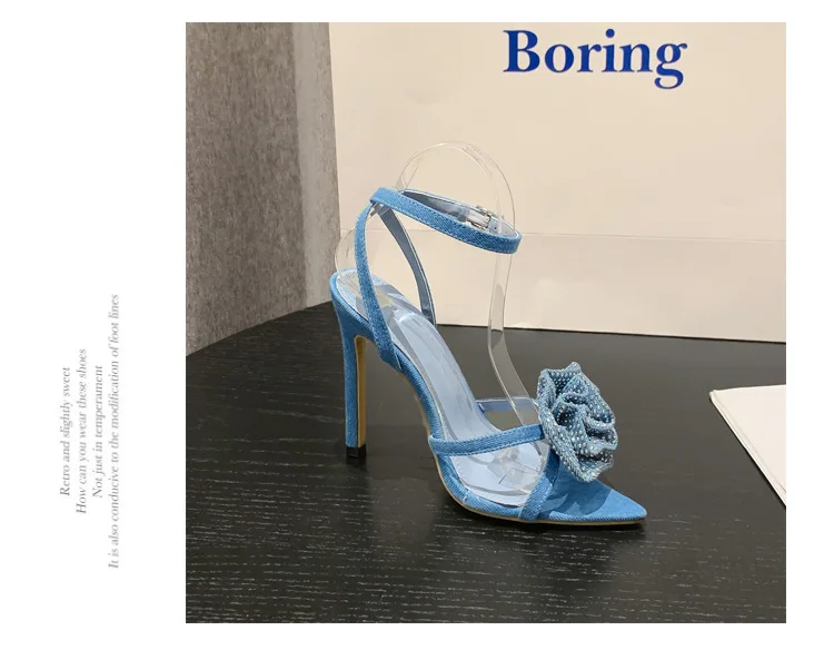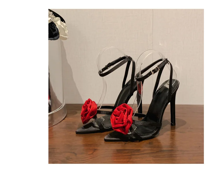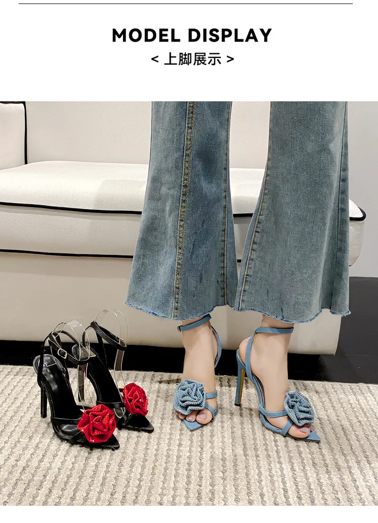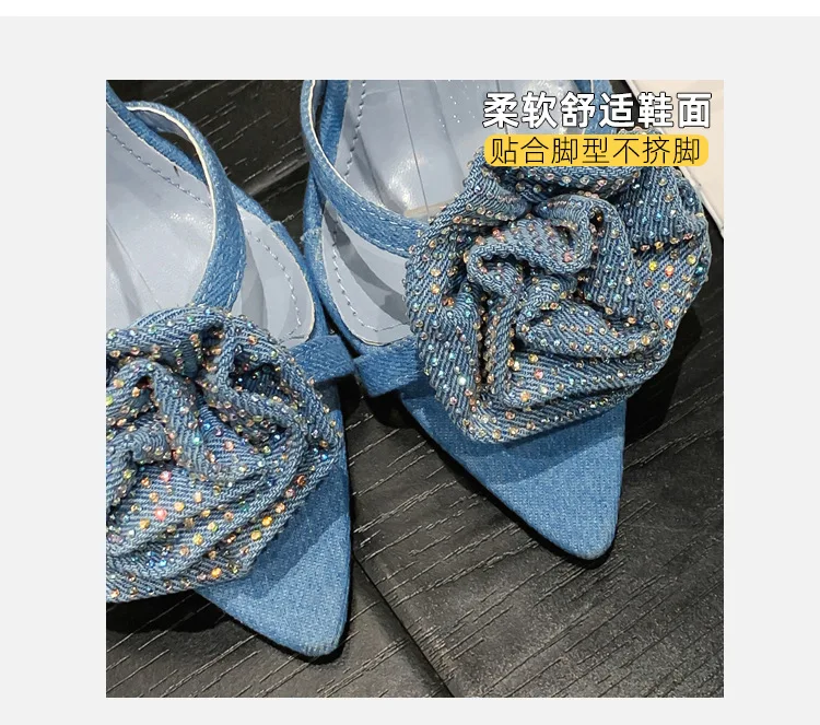 Xajzpa Sandals Sexy Low-Heeled Shoes With Strap Suit Female Beige Large Size Women's Rhinestone Low-heeled Stiletto Black Big Retr