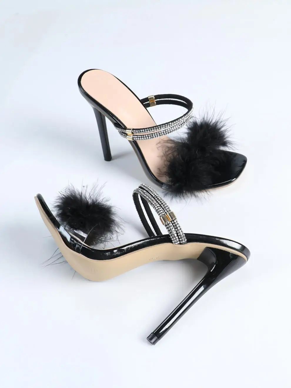 Xajzpa Sandals Stiletto Heels Comfort Shoes for Women 2025 Summer Large Size Suit Female Beige Sexy High Girls Low Big Fashion Fur New