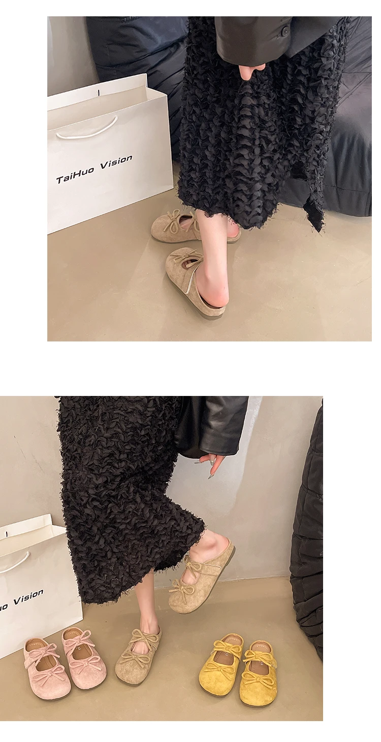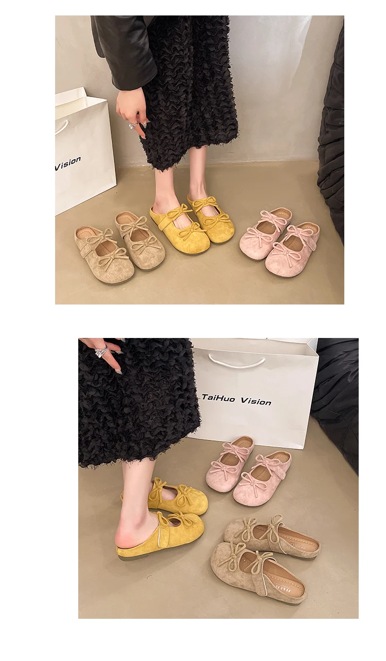 Xajzpa Shoes Ladies' Slippers Slipers Women Butterfly-Knot Cover Toe 2025 Summer Flat Mary Janes Butterfly-knot Slides Shoes Woman 2025