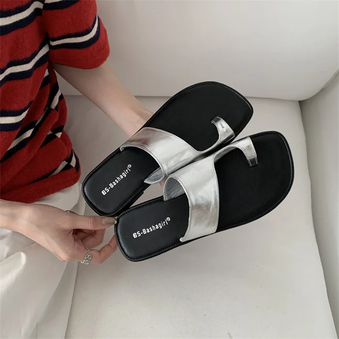 Xajzpa Shoes Women Slippers Flat Rubber Flip Flops Slides Loafers Soft Silver Hawaiian Women's Shoes Silver Loafers Slippers Soft Rubb