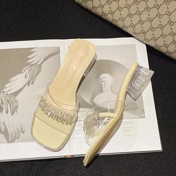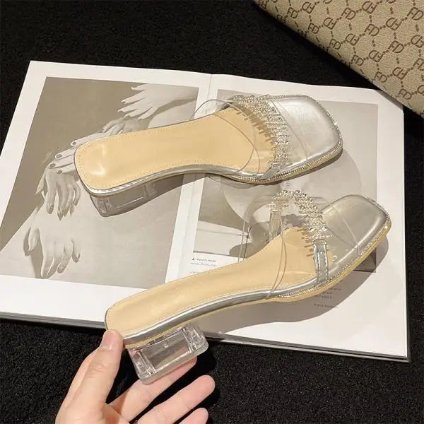 Xajzpa Shoes Womens Slippers Outdoor Pantofle Slides Jelly Flip Flops Square heel Heeled Mules Fashion 2025 Glitter Block High Transpar