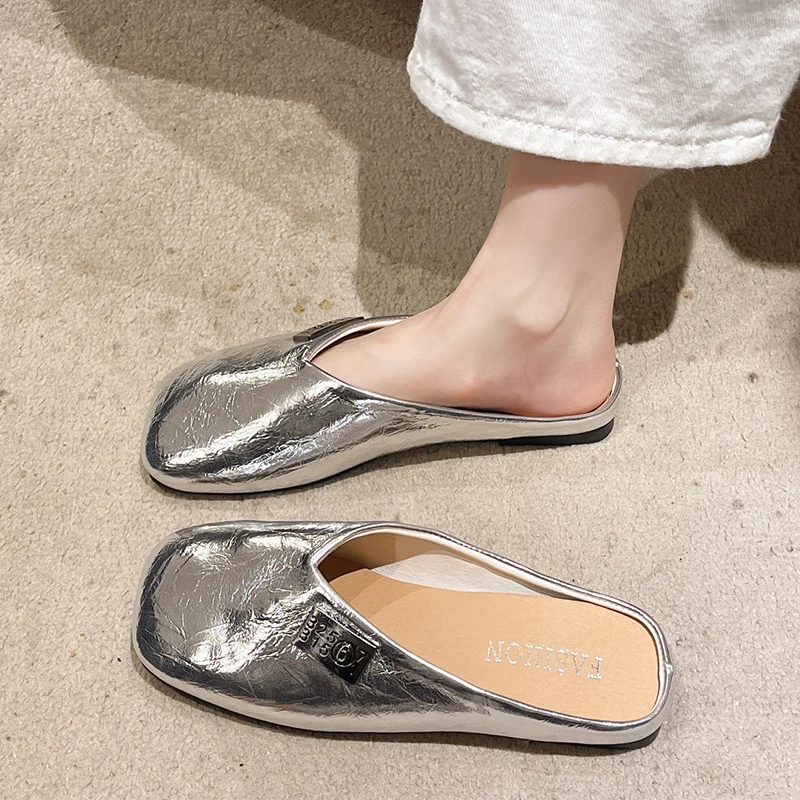 Xajzpa Square Toe Shoes Ladies' Slippers Luxury Slides Slipers Women Silver Cover Designer Retro Shoes Woman's Slippers Slides Squ