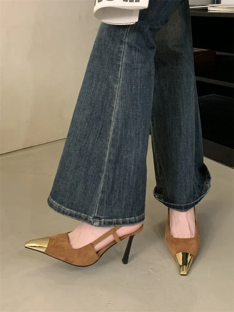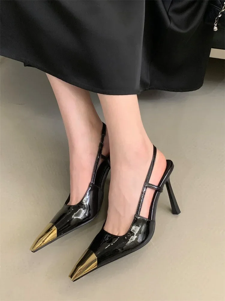 Xajzpa Street Style Pointed Toe Women Pumps Fashion Slingbacks Thin High Heels Elegant Stripper Prom Ladies Sandals Shoes