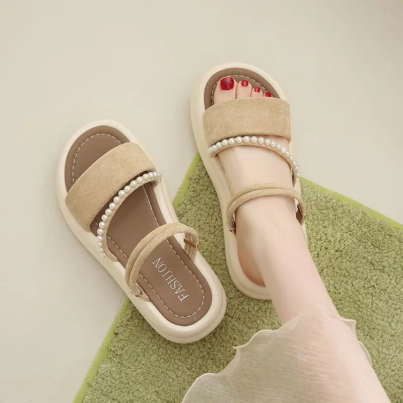Xajzpa String Bead Shoes House Slippers Platform Slides Slipers Women 2025 House Slippers Platform Shoes String Bead Slides Slipers Wom