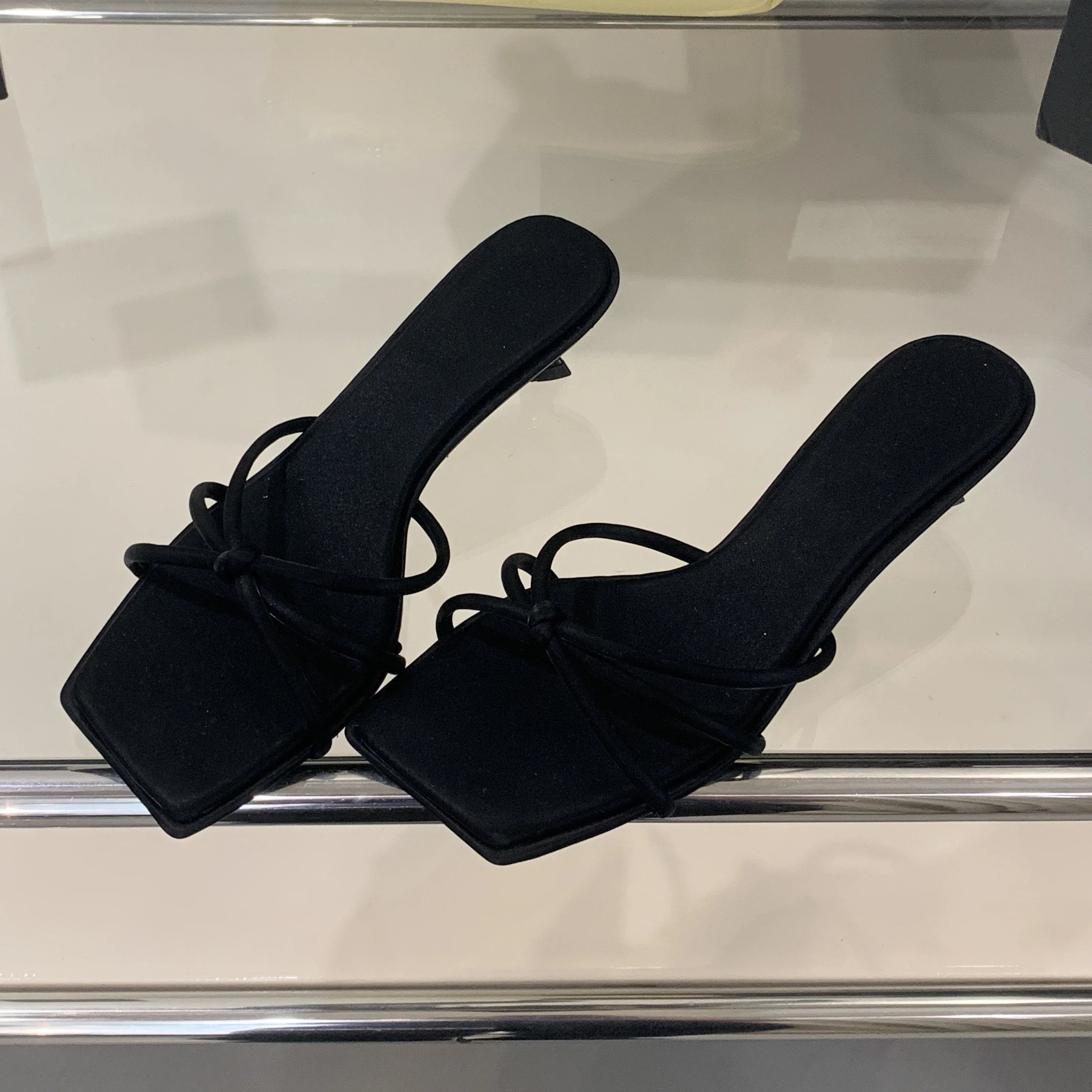 Xajzpa Summer Narrow Band Buckle Strap Slippers Women Square Toe Stiletto Low Heels Slide Mules Party Shoes Zapatos De Mujer