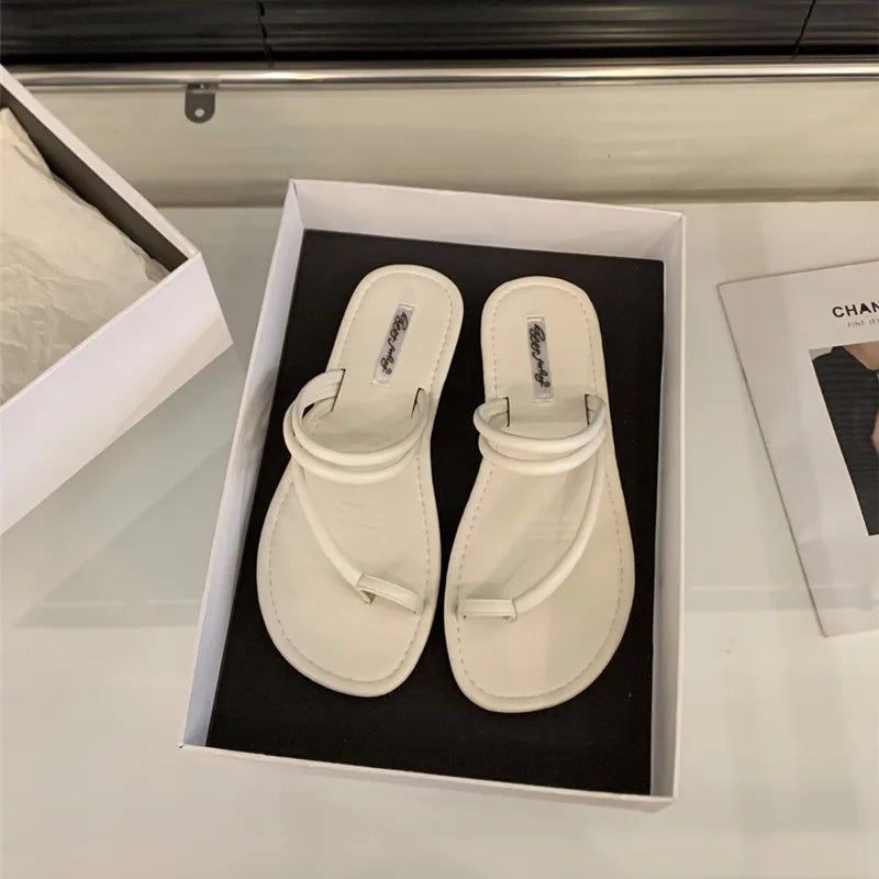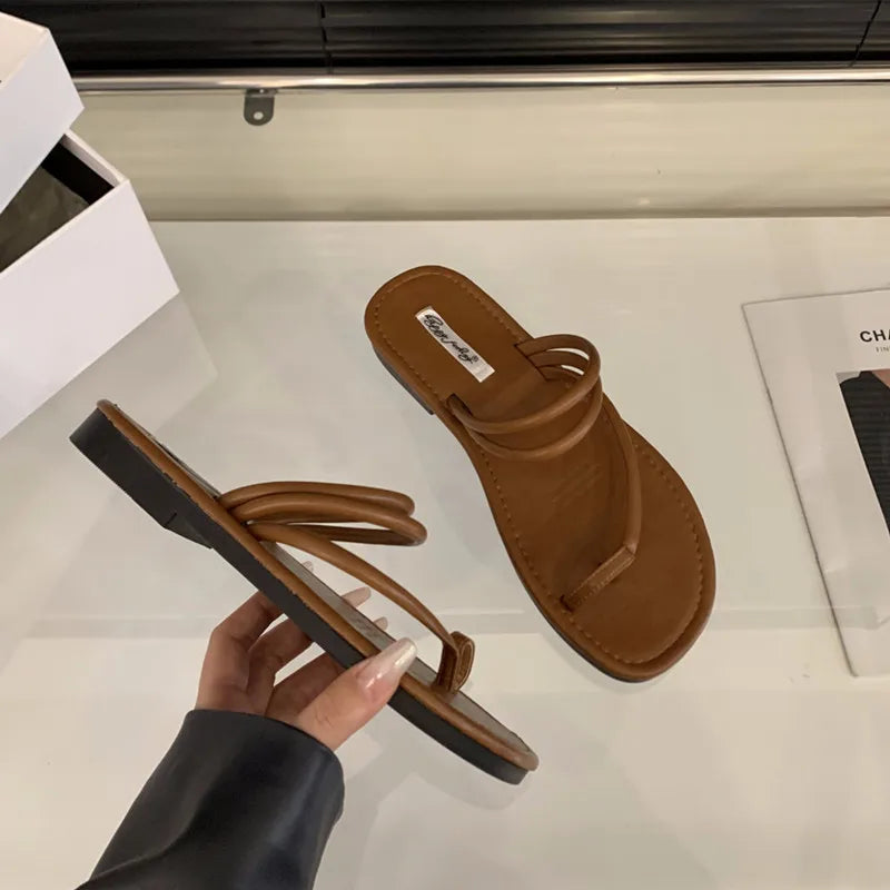 Xajzpa Summer New Brand Women Slippers Fashion Narrow Band Ladies Elegant Slides Flat Heel Outdoor Gladiator Shoes Beach Shoes
