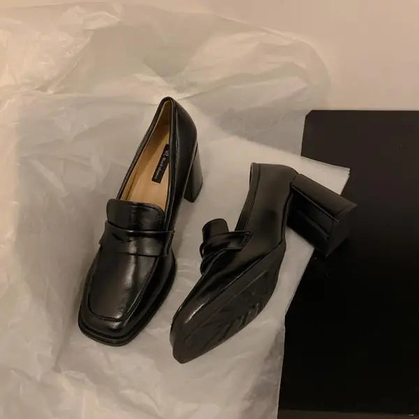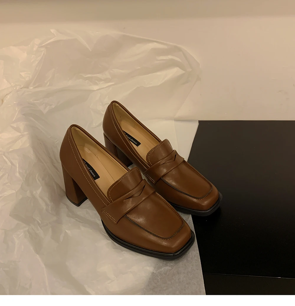 Xajzpa Summer Shoes Ladies Women's Heels Oxfords Loafers With Fur Female Footwear Slip-on New On Heels Retro Leather Dress Slip