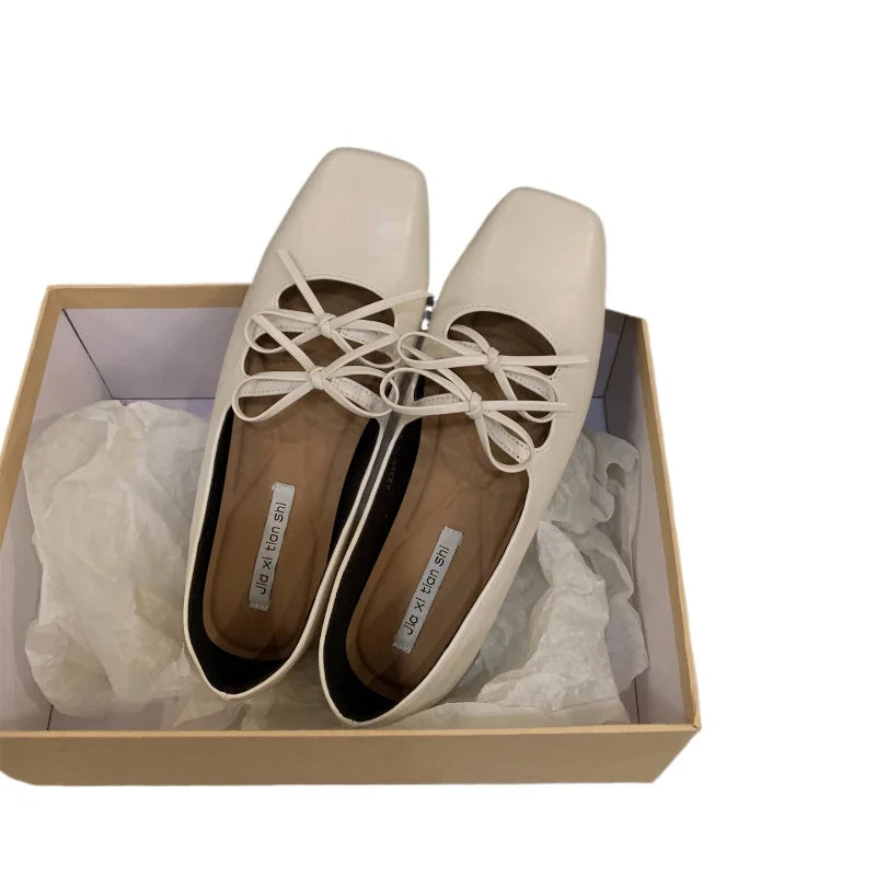 Xajzpa Sweet Double Bowknot Women Mary Jane Shoes New 2024 Square Toe Dress Flat Shoe Ladies Red Soft Sole Shoes Zapatos