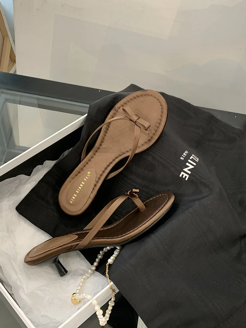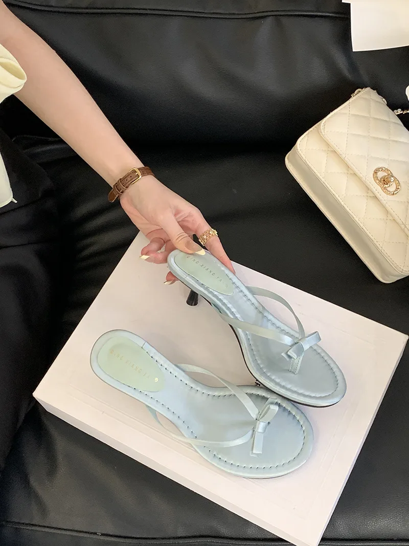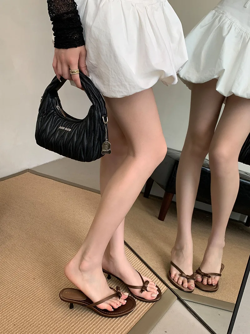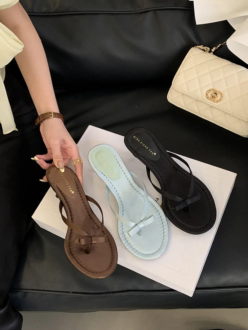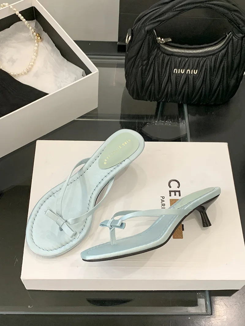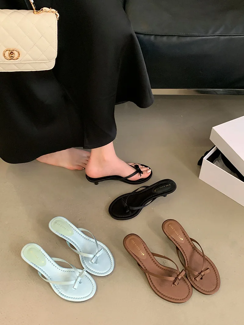 Xajzpa Thin Heels Female Shoes Low Butterfly-Knot Womens Slippers Outdoor Rubber Flip Flops Slides 2025 Hawaiian Soft PU Rome Butterfly