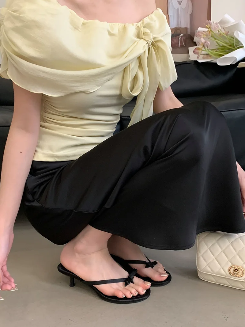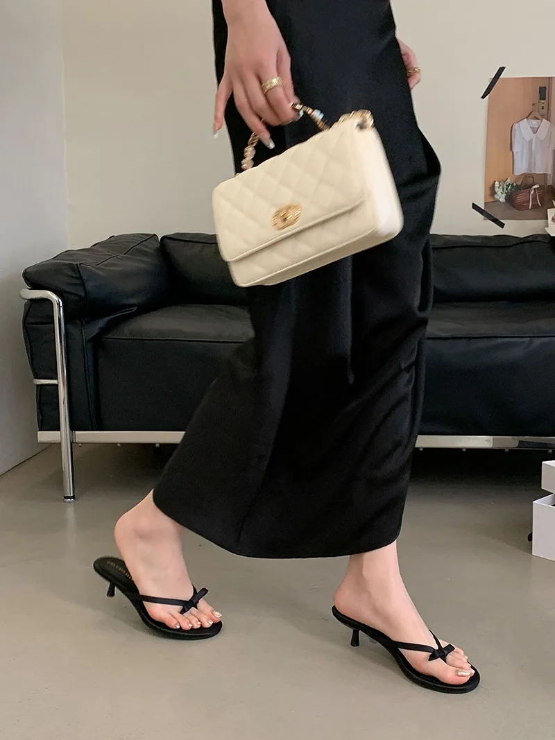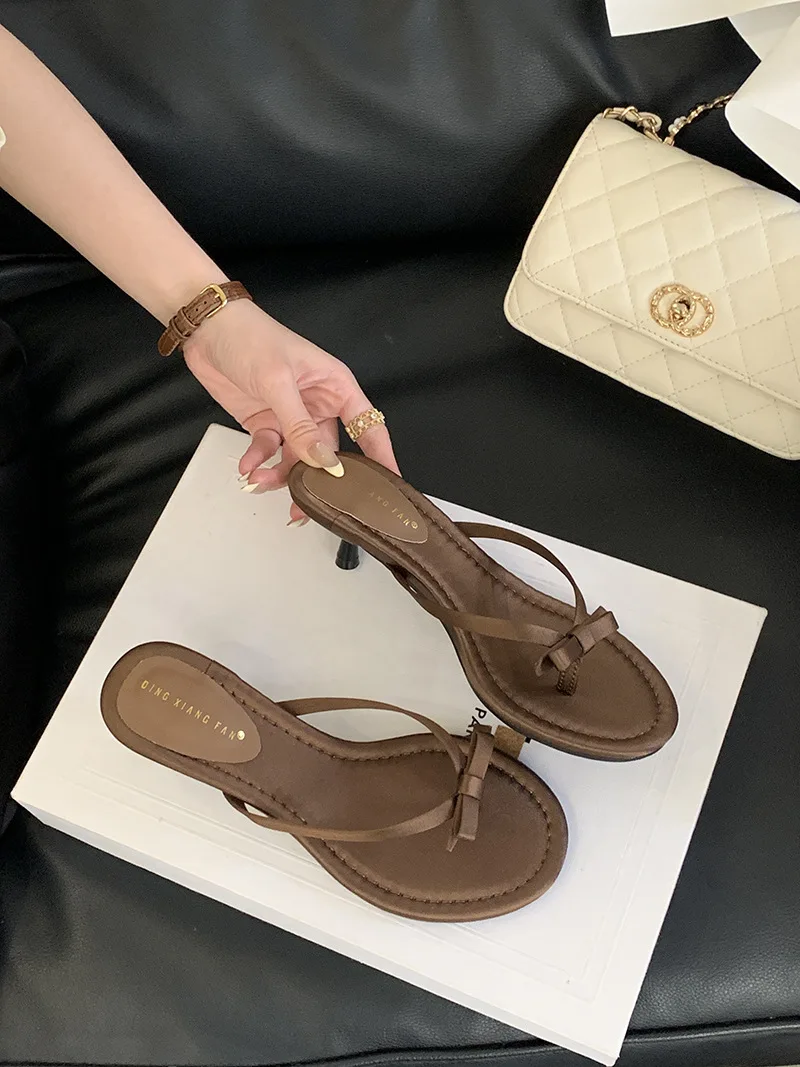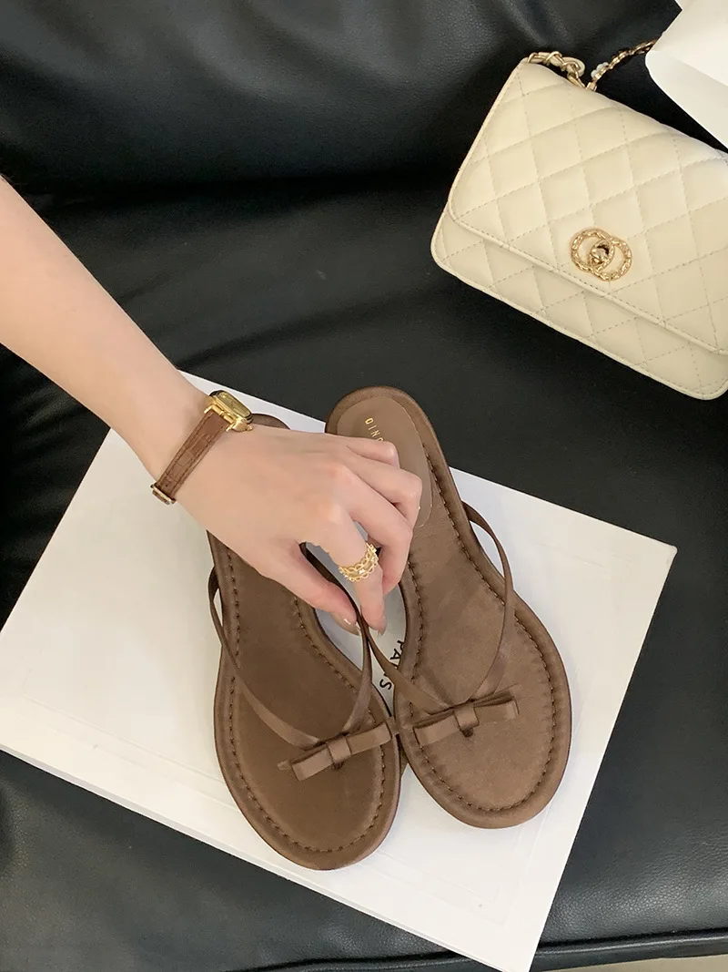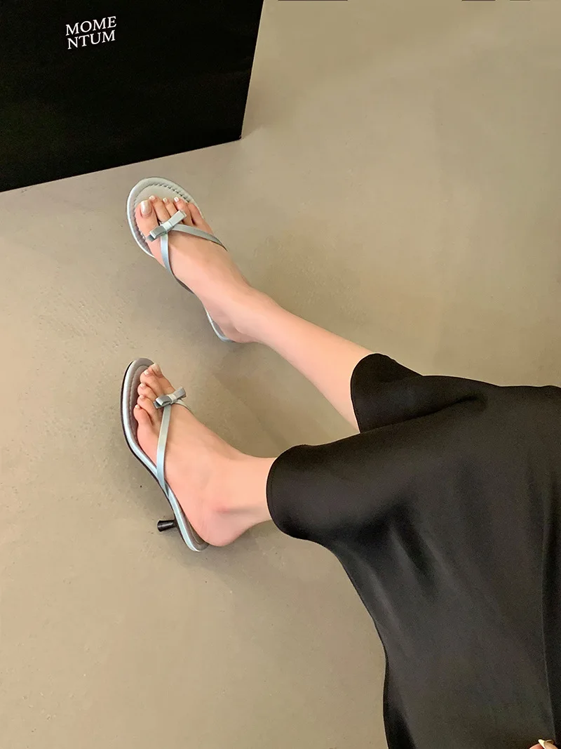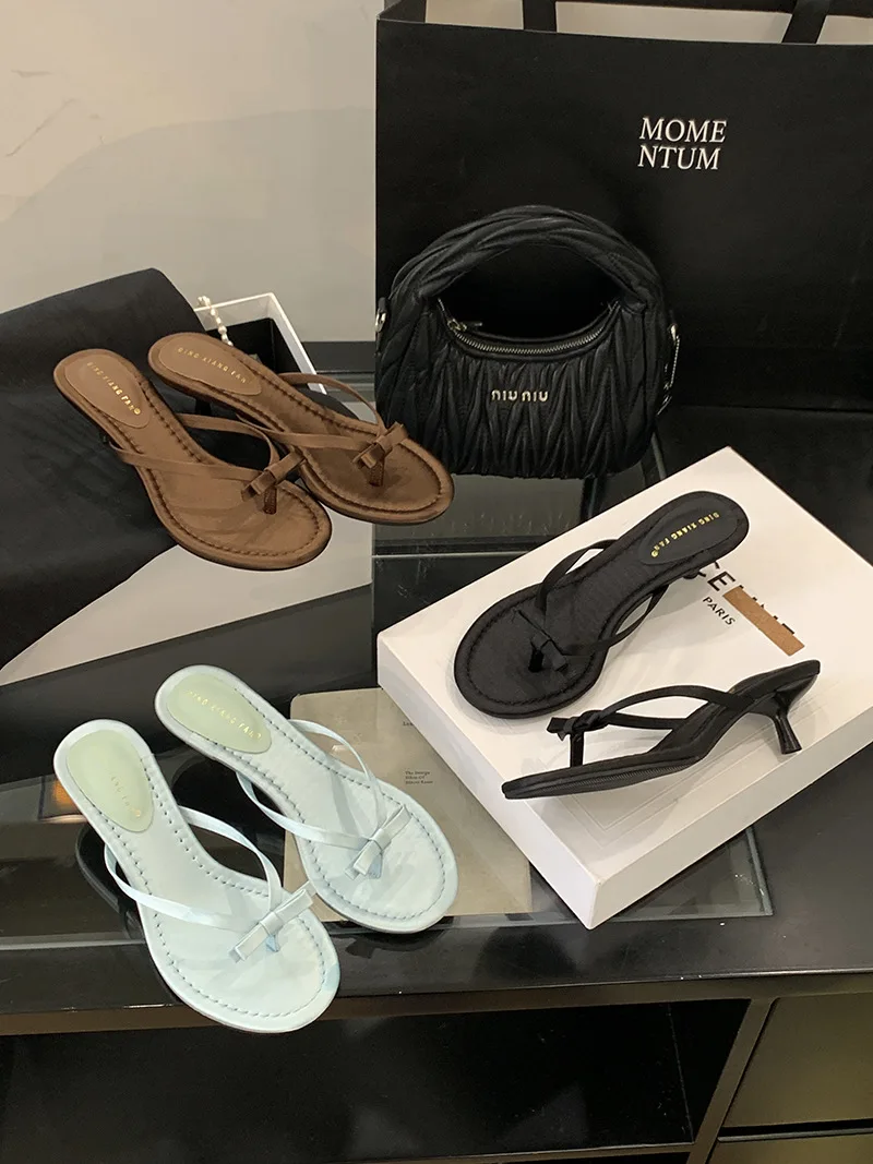 Xajzpa Thin Heels Female Shoes Low Butterfly-Knot Womens Slippers Outdoor Rubber Flip Flops Slides 2025 Hawaiian Soft PU Rome Butterfly