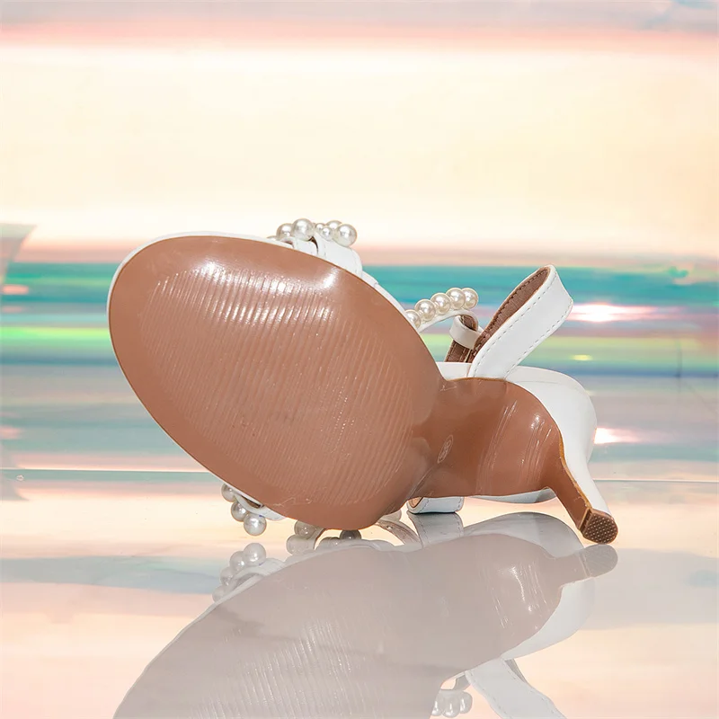 Xajzpa White High Heels Gladiator Sandals Women Summer Fashion String Bead Narrow Band Open Toe Buckle Strap Party Dress Shoes