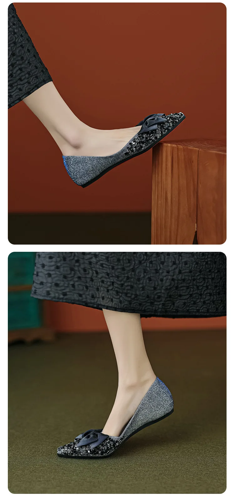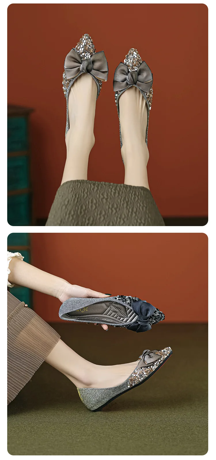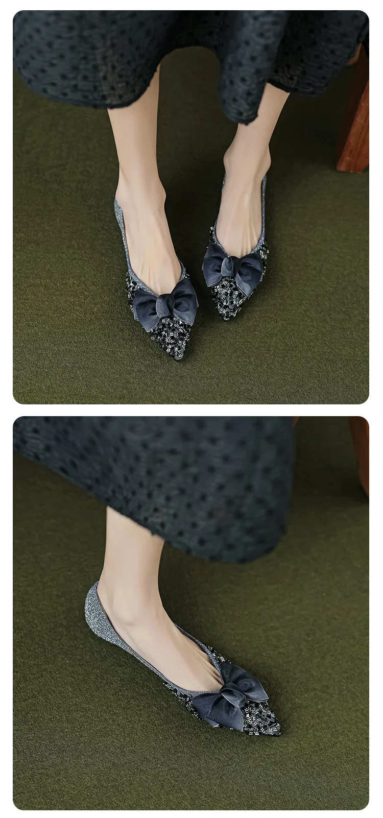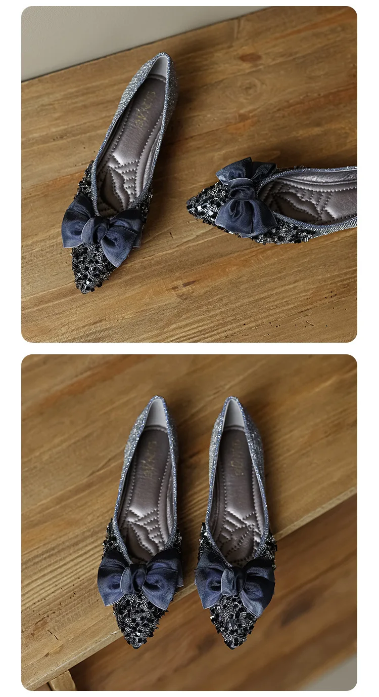 Xajzpa Women Bow Rhinestone Point Casual Shoes Women Flats Designer Dress Walking Shoes Autumn New Trend Shallow Zapatillas Mujer