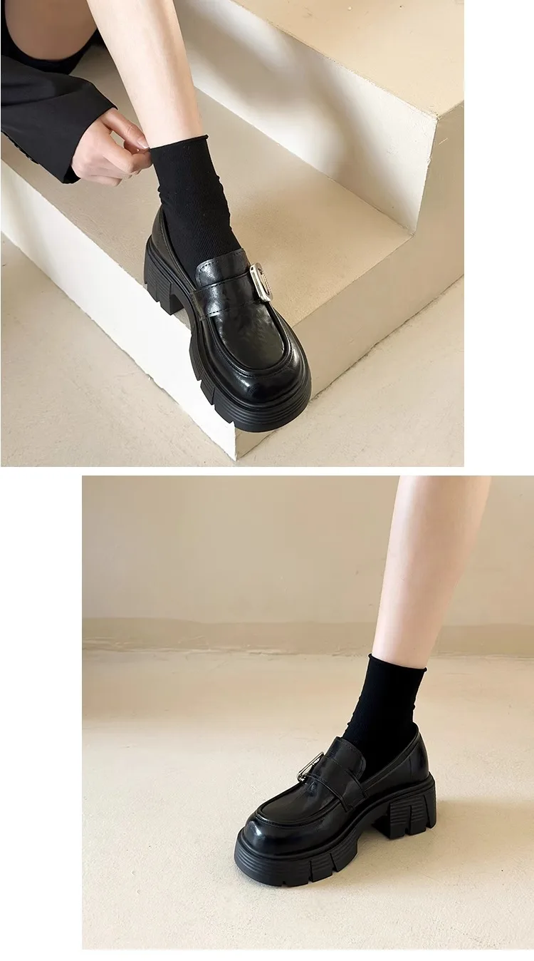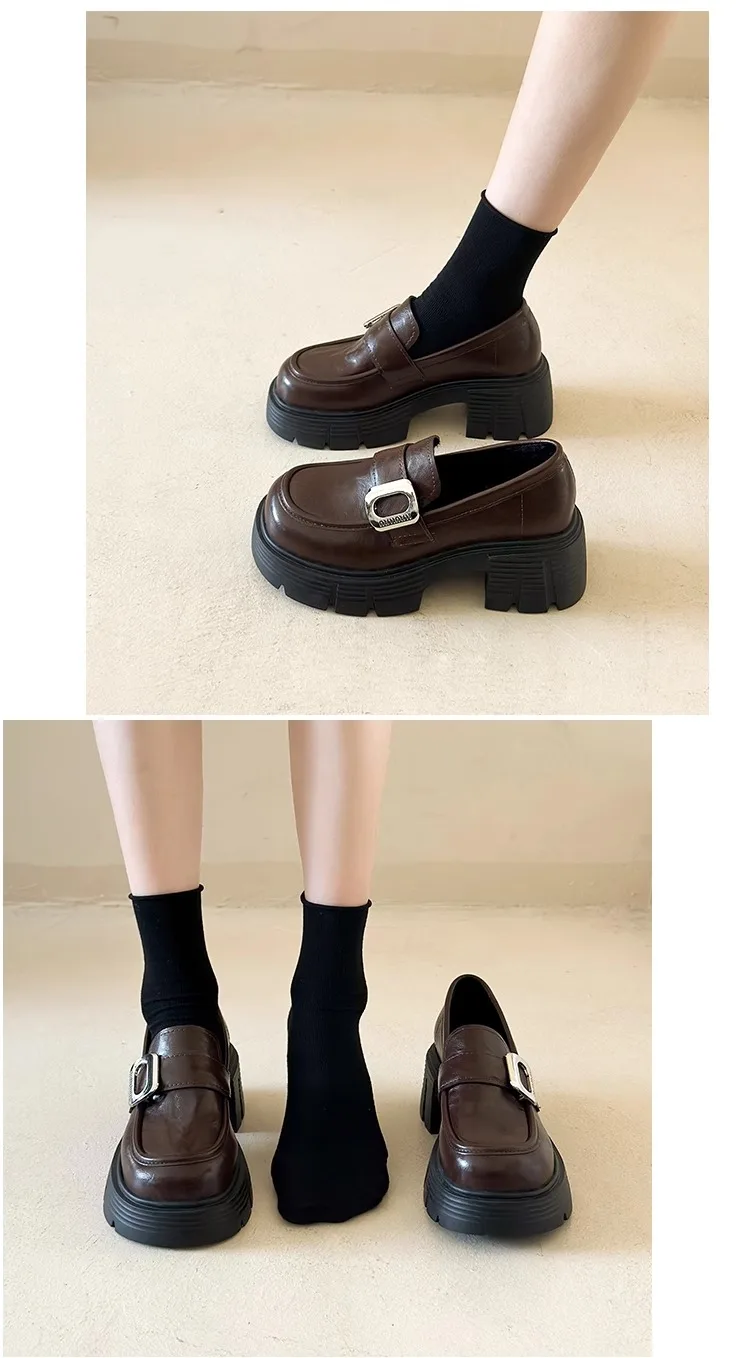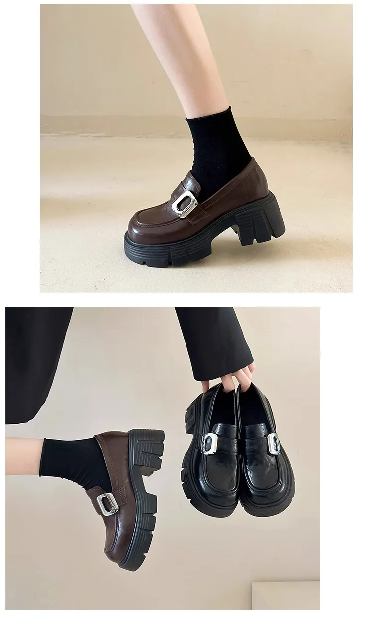 Xajzpa Women Shoes Autumn Clogs Platform Female Footwear Slip-on Oxfords Loafers With Fur Fall Creepers Winter Dress Slip On Leather