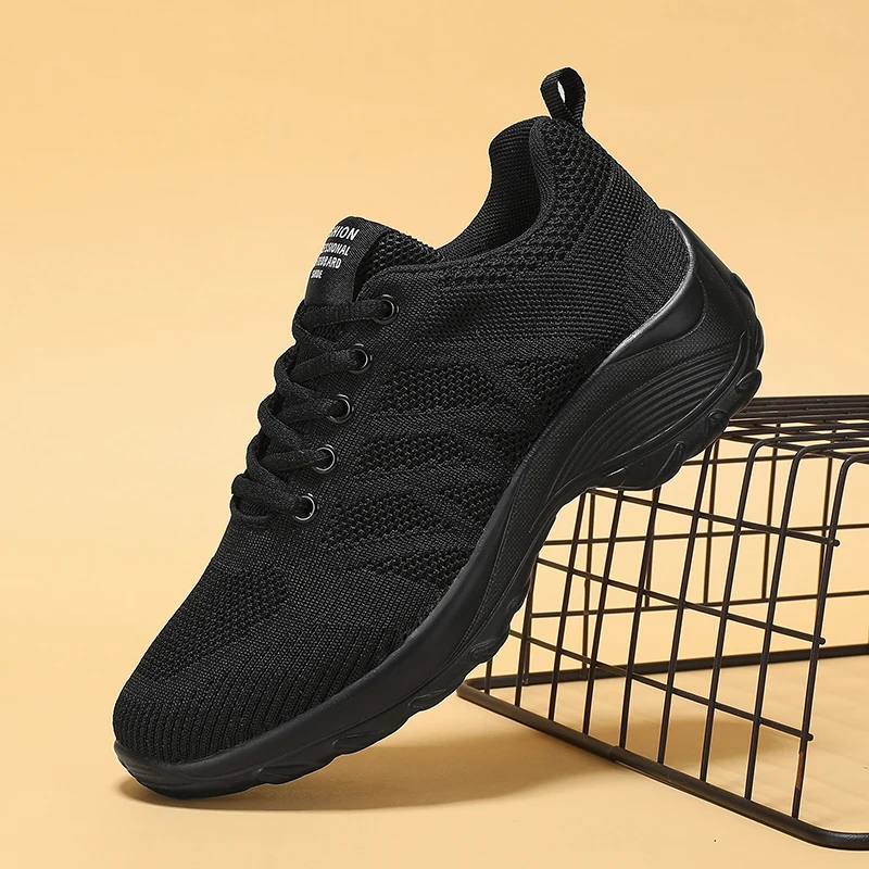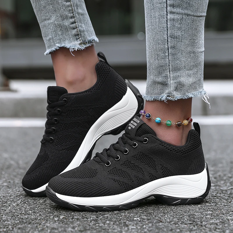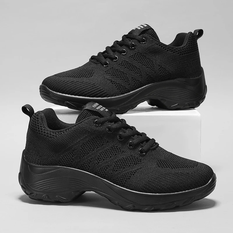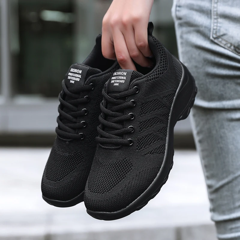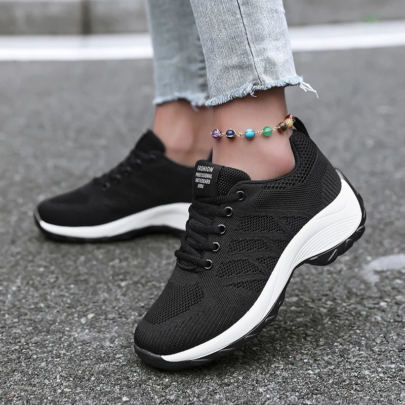 Xajzpa Women's Casual Shoes Breathable Walking Mesh Fabric Lace Up Flat Sports Shoes Women's Tenis Feminino Black Hiking Running Shoes