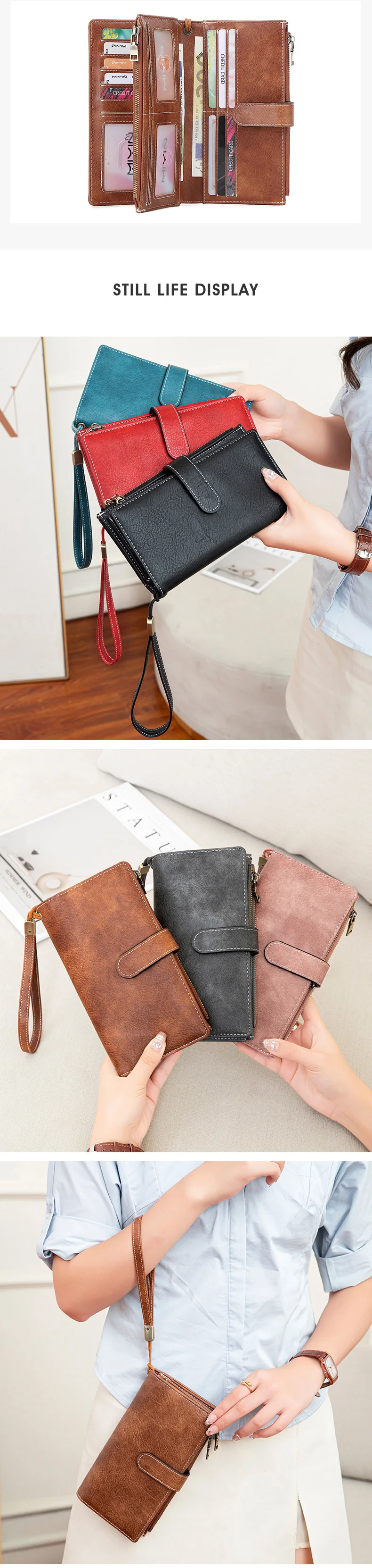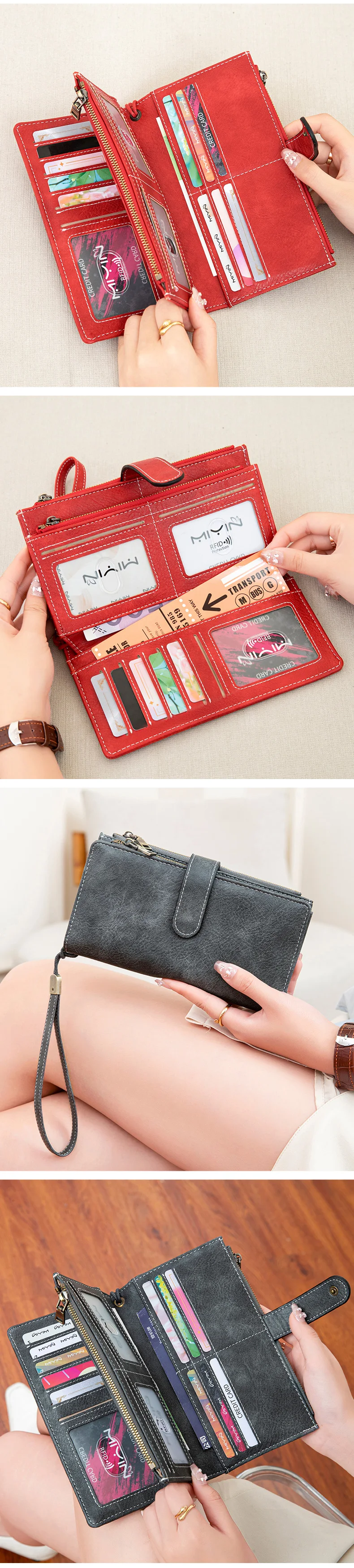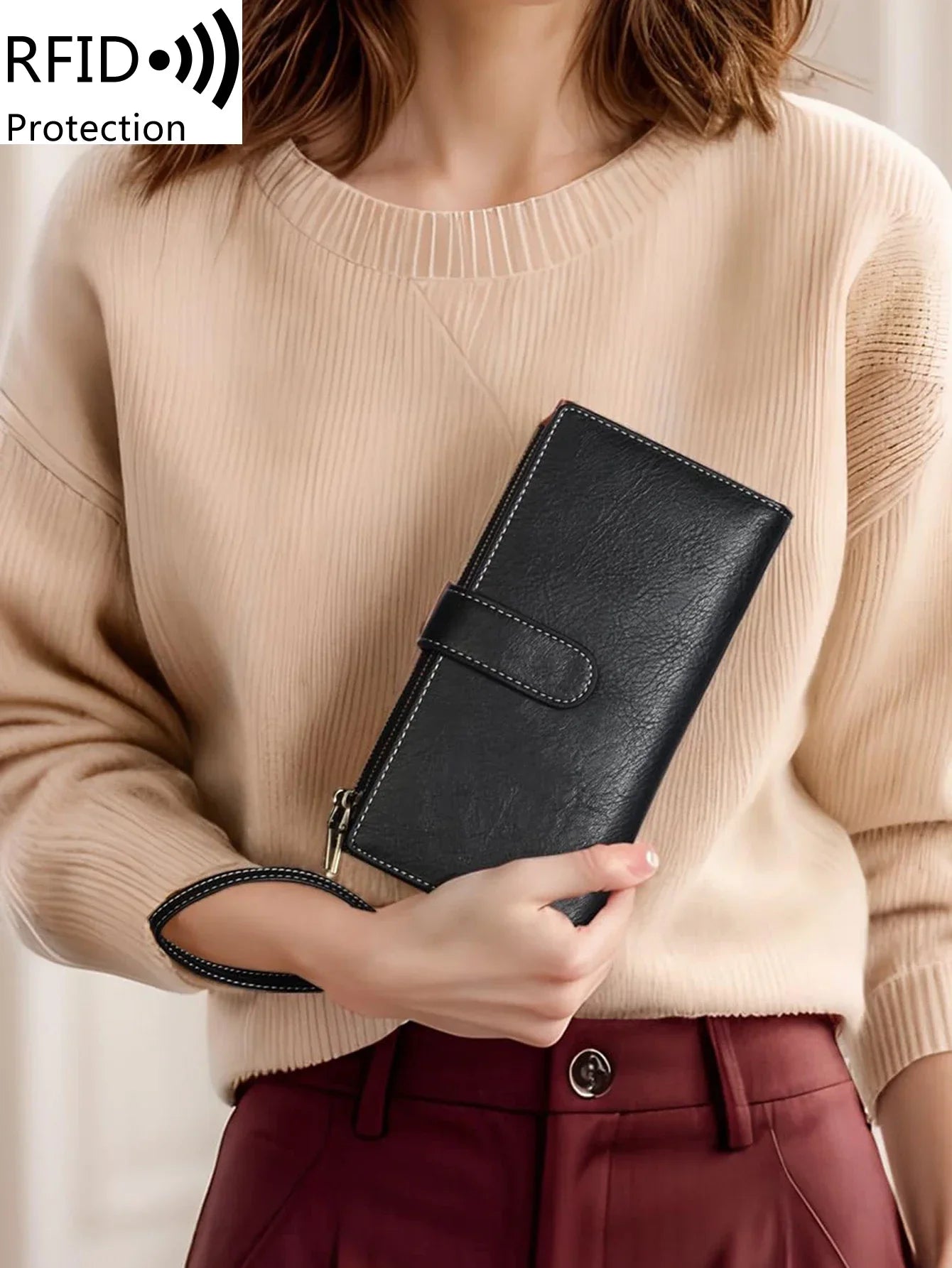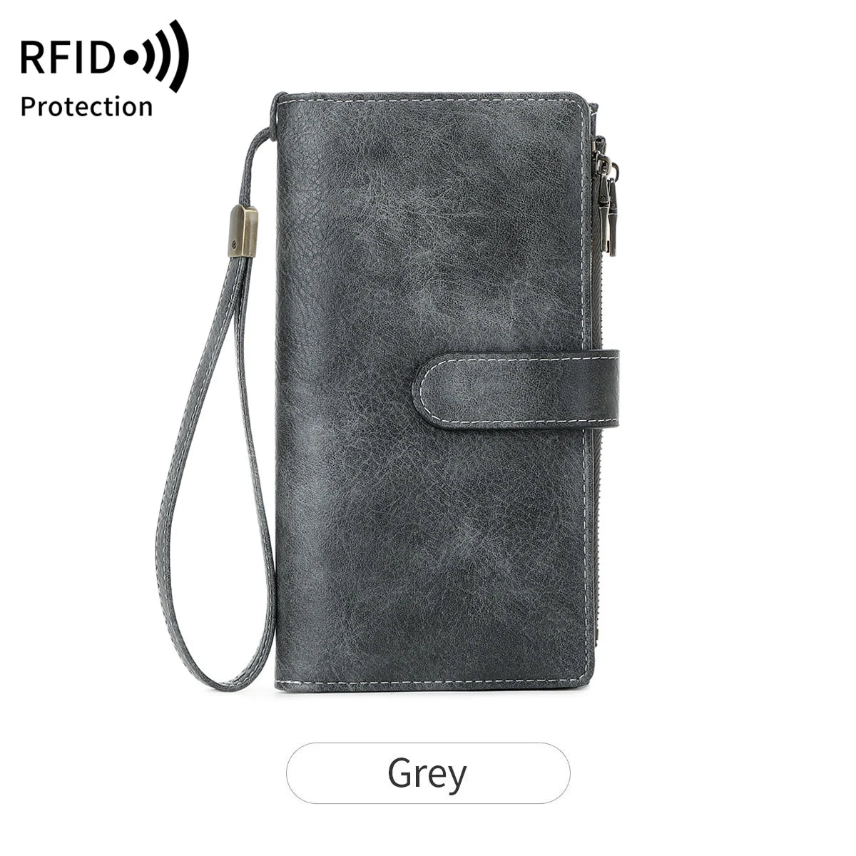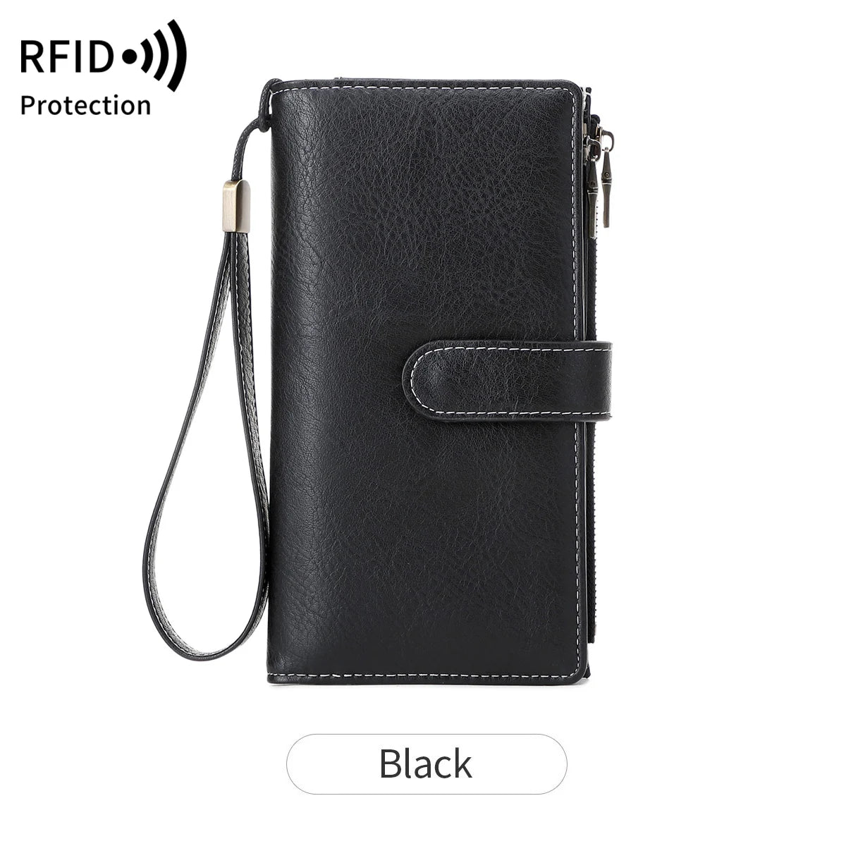 Xajzpa Fashion Retro Women's Long Wallet RFIDTrifold Large Capacity Credit Card Holder Card Holder Double Zipper Clutch Wristlet Wallet